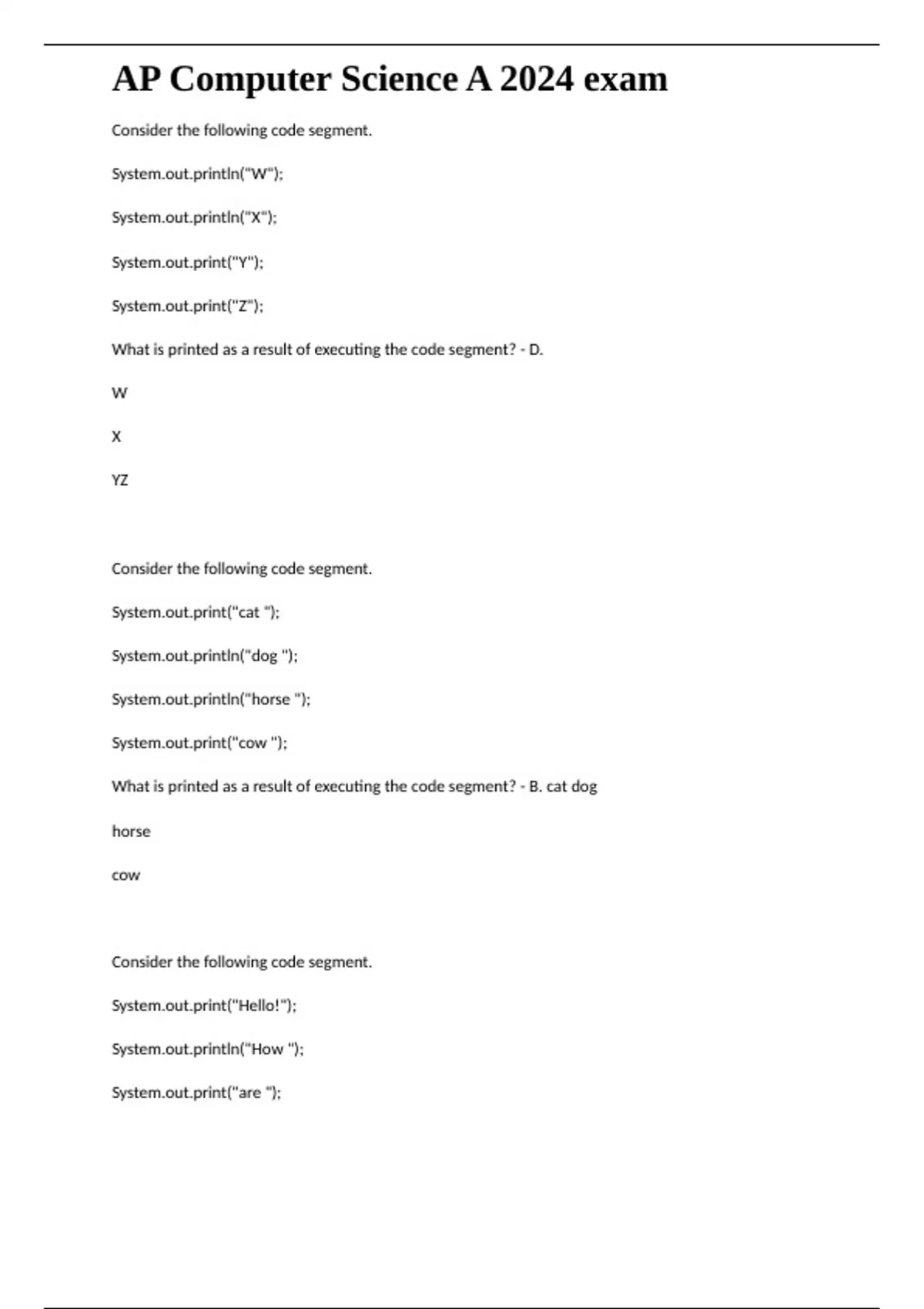 Each of the following code segments is intended to print the word Hello. Which of the following code