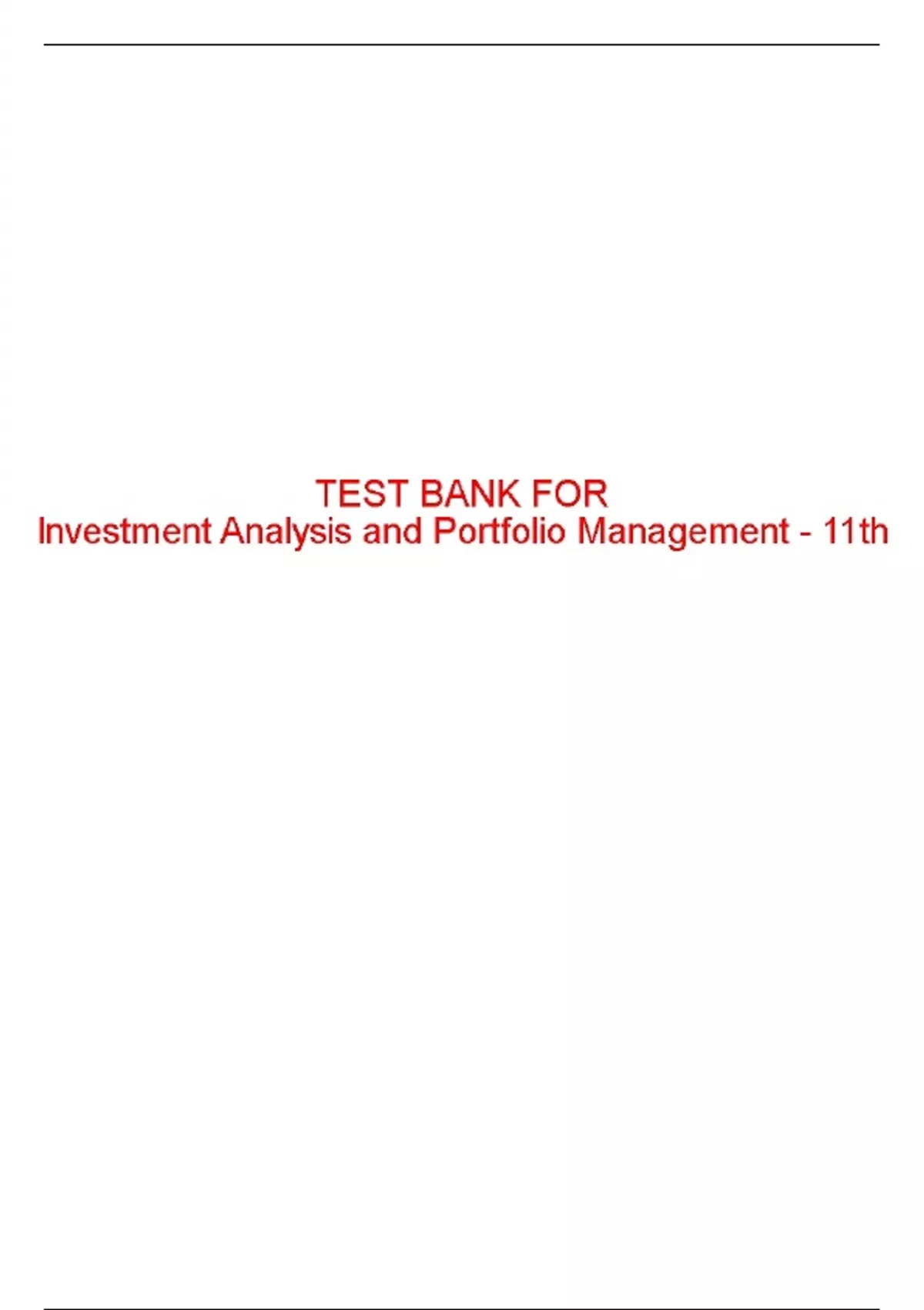 , Test Bank For Investment Analysis and Portfolio Management 11th Edition