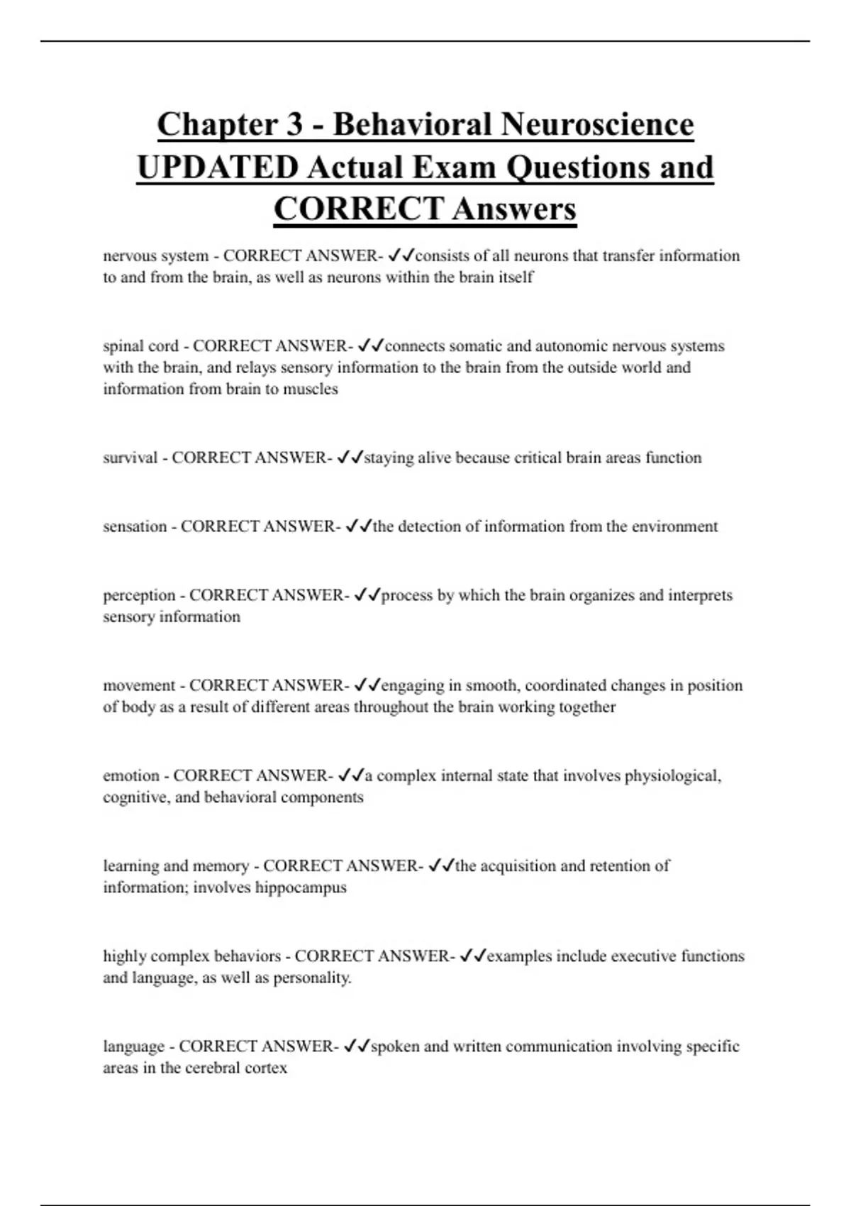 nervous system - CORRECT ANSWER- ✔✔consists of all neurons that transfer information