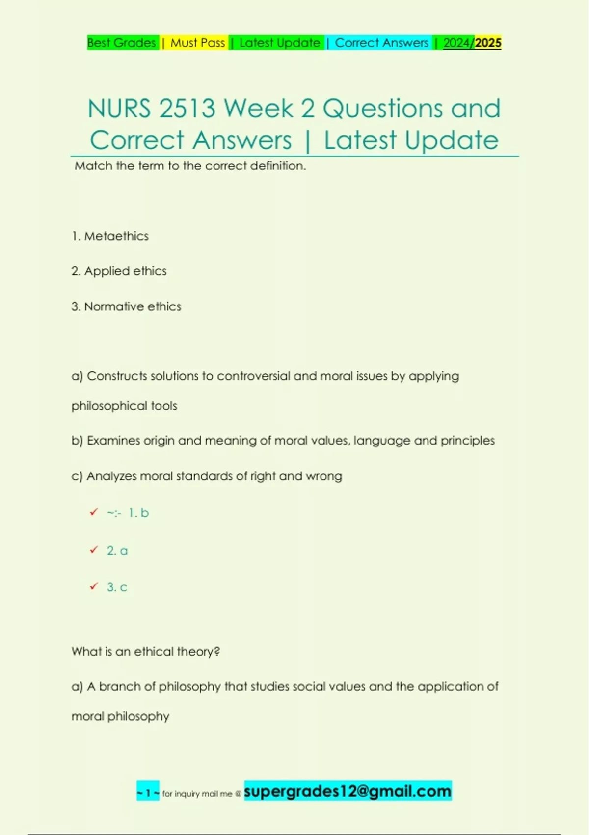 , Best Grades | Must Pass | Latest Update | Correct Answers | 2024/2025