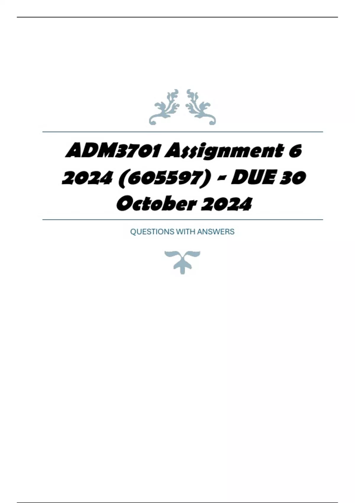 QUESTIONS WITH ANSWERS ADM3701 Assignment 6 2024 (605597) - DUE 30 October 2024