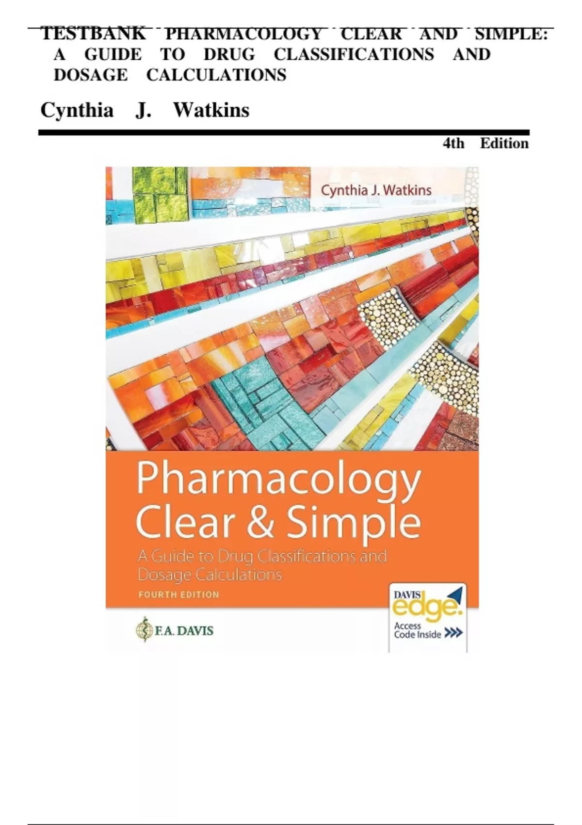 Test bank for Pharmacology Clear and Simple A Guide to Drug Classifications and Dosage Calculations 4th Edition by Cynthia Watkins 9781719644747 Chapter 1-21 Complete Guide.