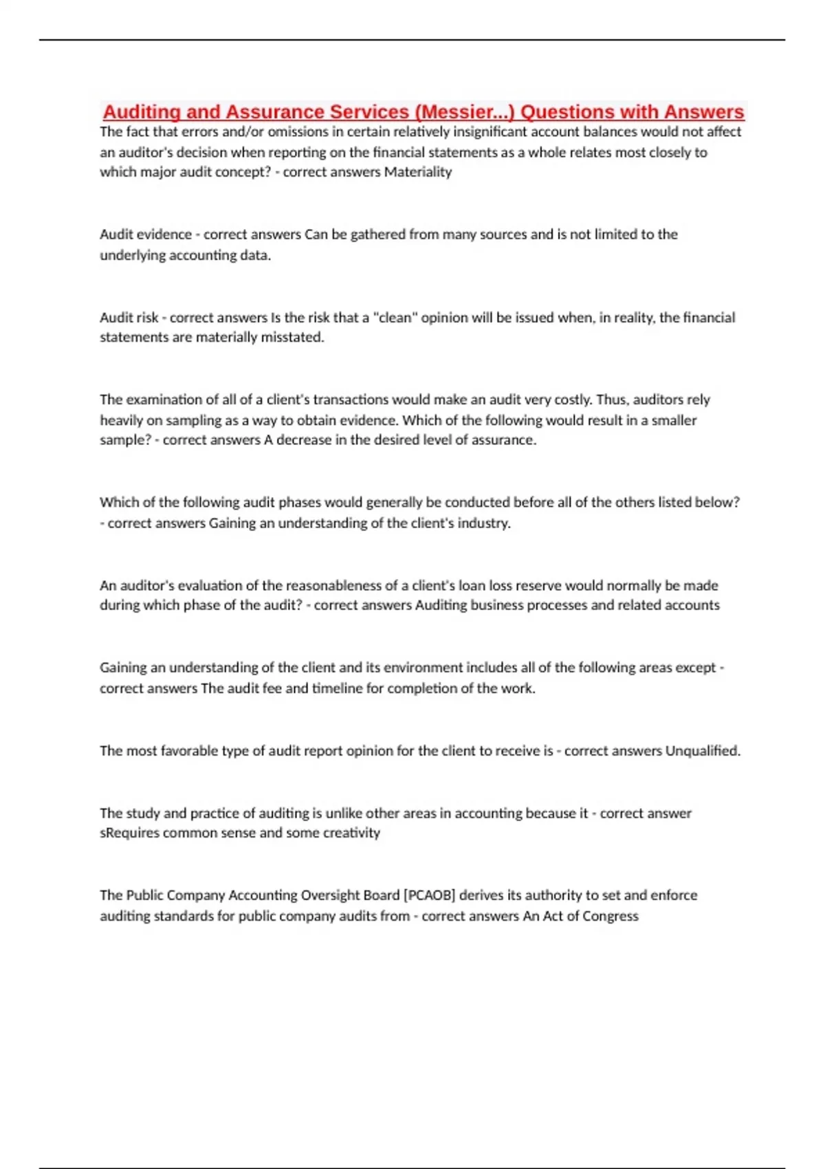 standards? - correct answersAll of them, 1 Auditing standards issued by the AICPA and the PCAOB are