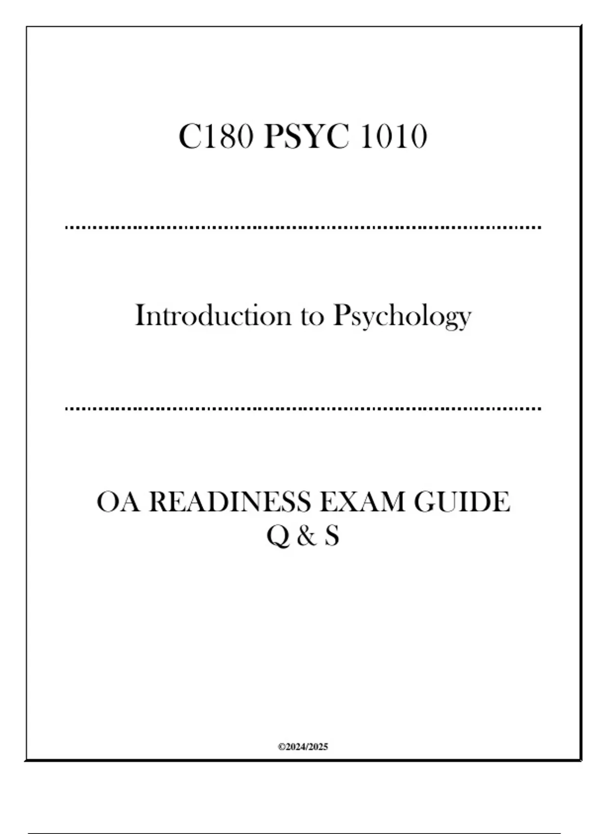 (WGU C180) PSYC 1010 Introduction to Psychology - OA Readiness Exam Guide - 2024.(WGU C180) PSYC 1010 Introduction to Psychology - OA Readiness Exam Guide - 2024.(WGU C180) PSYC 1010 Introduction to Psychology - OA Readiness Exam Guide - 2024.(WGU C180) PSYC 1010 Introduction to Psychology - OA Readiness Exam Guide - 2024.