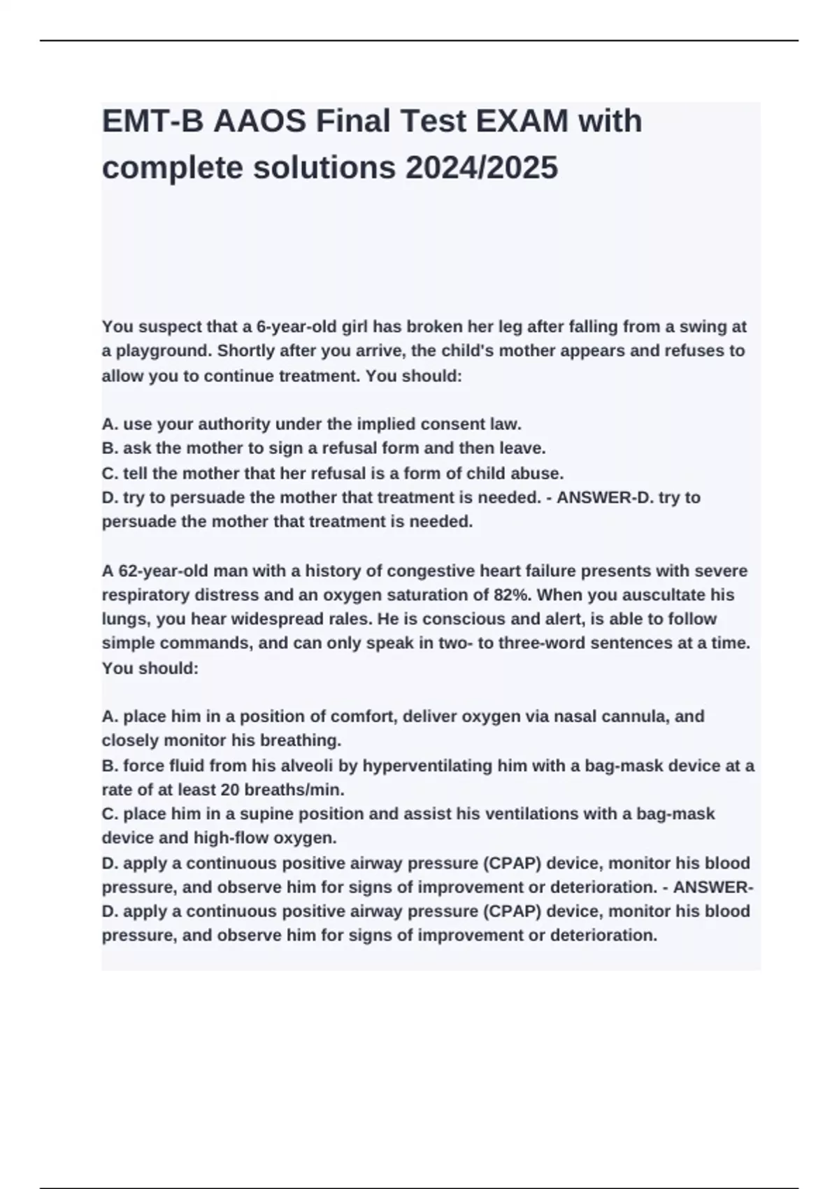 EMT-B AAOS Final Test EXAM with complete solutions 2024_2025