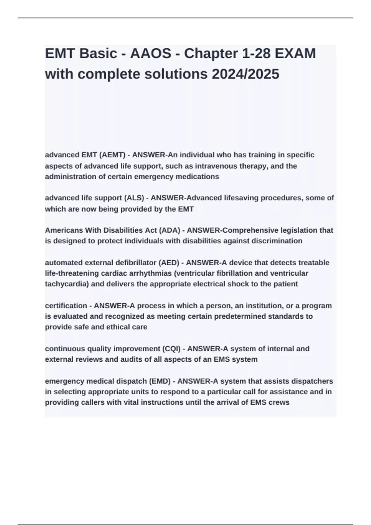 EMT Basic - AAOS - Chapter 1-28 EXAM with complete solutions 2024_2025.