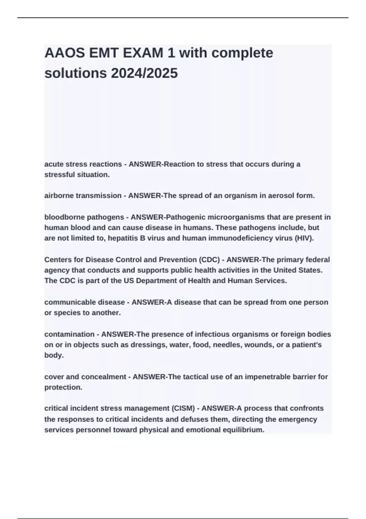 Centers for Disease Control and Prevention (CDC) - ANSWER-The primary federal
