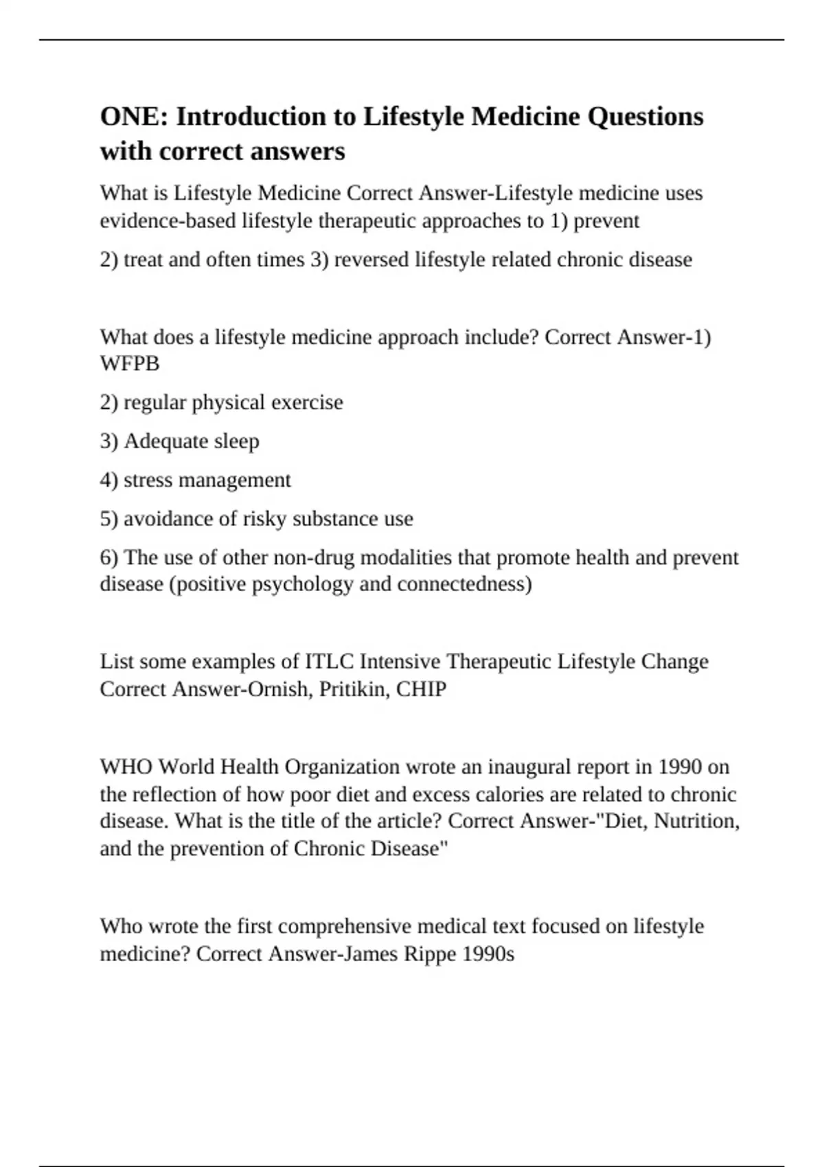What does a lifestyle medicine approach include? Correct Answer-1)