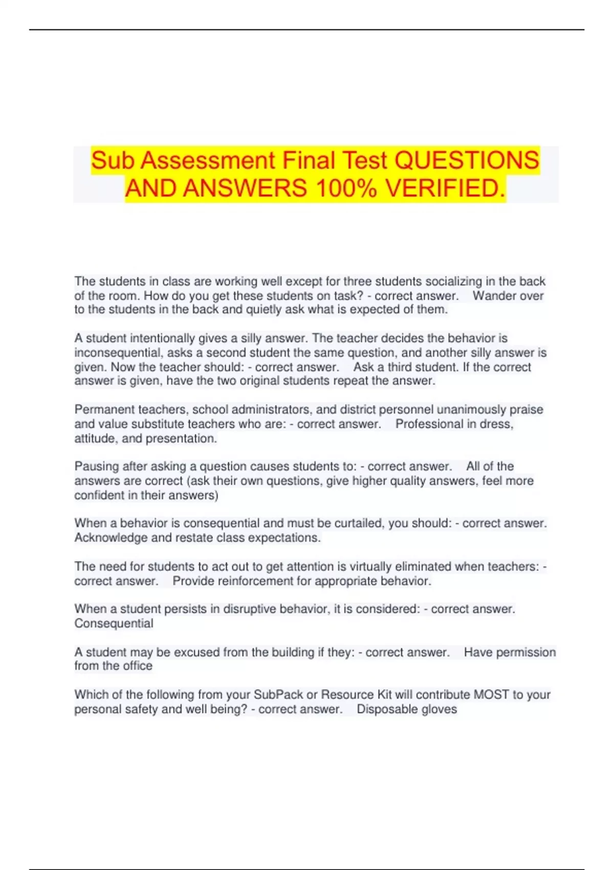 AND ANSWERS 100% VERIFIED.