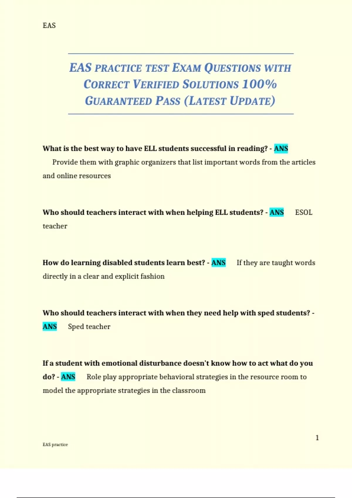 EAS PRACTICE TEST EXAM QUESTIONS WITH