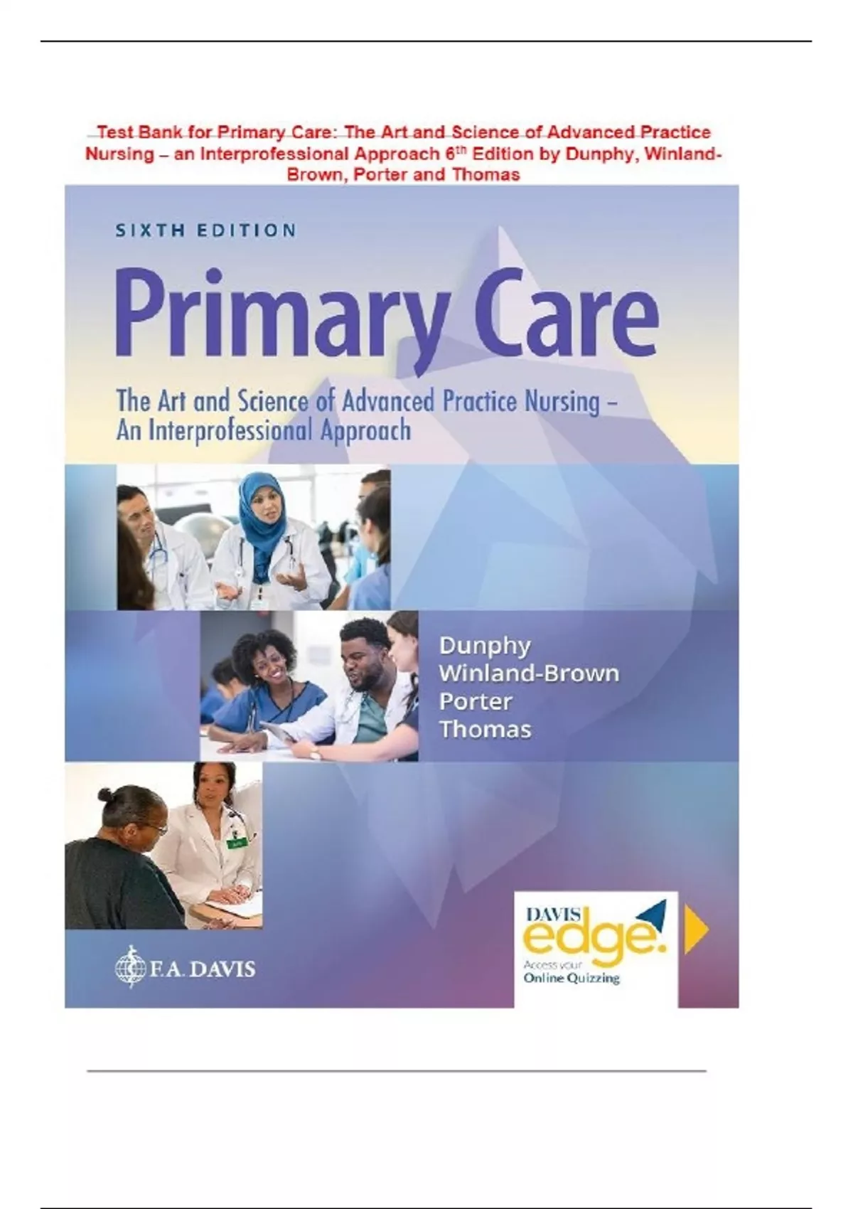 Test Bank for Primary Care: The Art and Science of Advanced Practice Nursing – an Interprofessional Approach 6th Edition by Dunphy, Winland-Brown, Porter and Thomas||complete guide graded A+