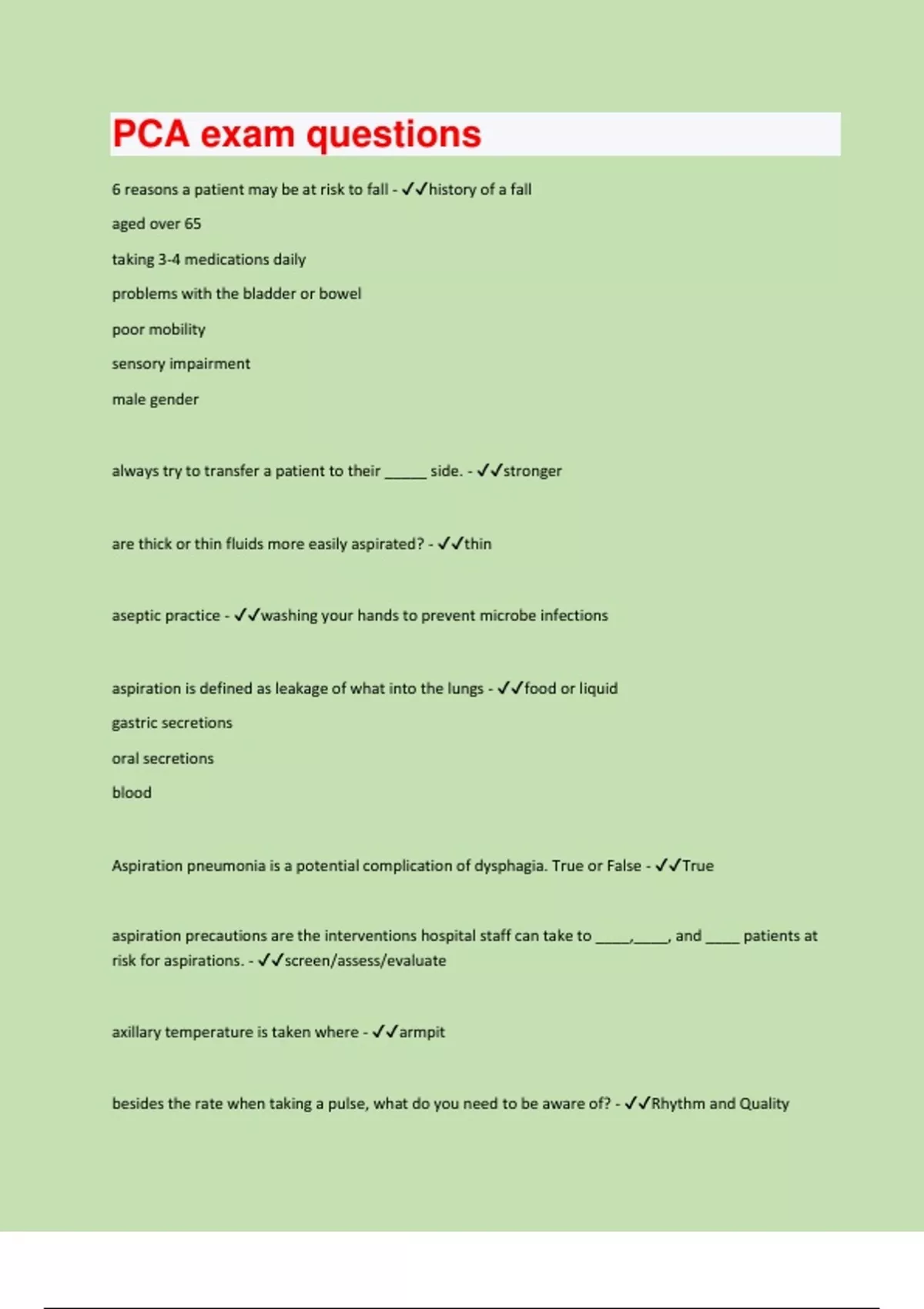 6 reasons a patient may be at risk to fall - ✔✔history of a fall