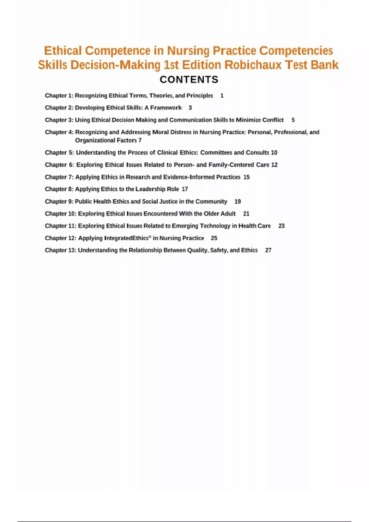 Test Bank For Ethical Competence in Nursing Practice Competencies Skills Decision-Making 1st Edition by Robichaux