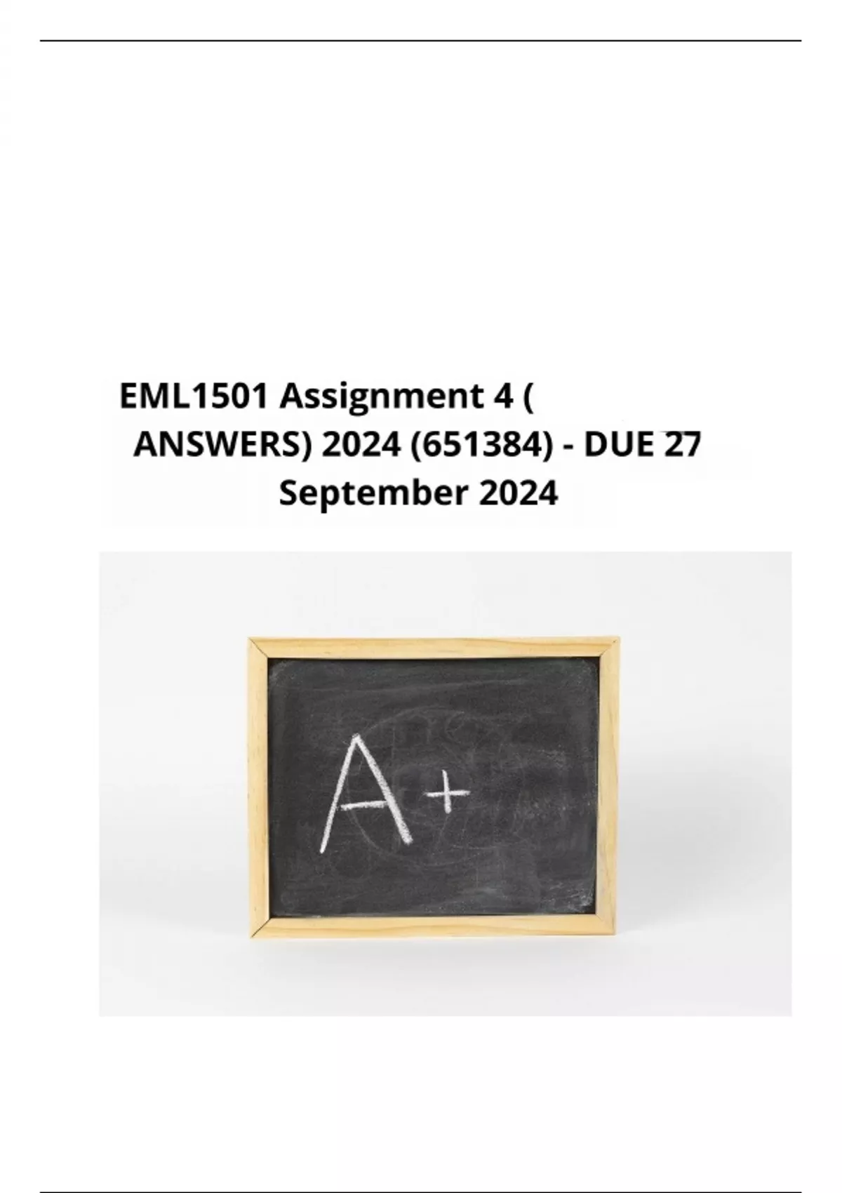 EML1501 Assignment 4 (COMPLETE ANSWERS) 2024 (651384) - DUE 27 September 2024 100% satisfaction guarantee UNISA