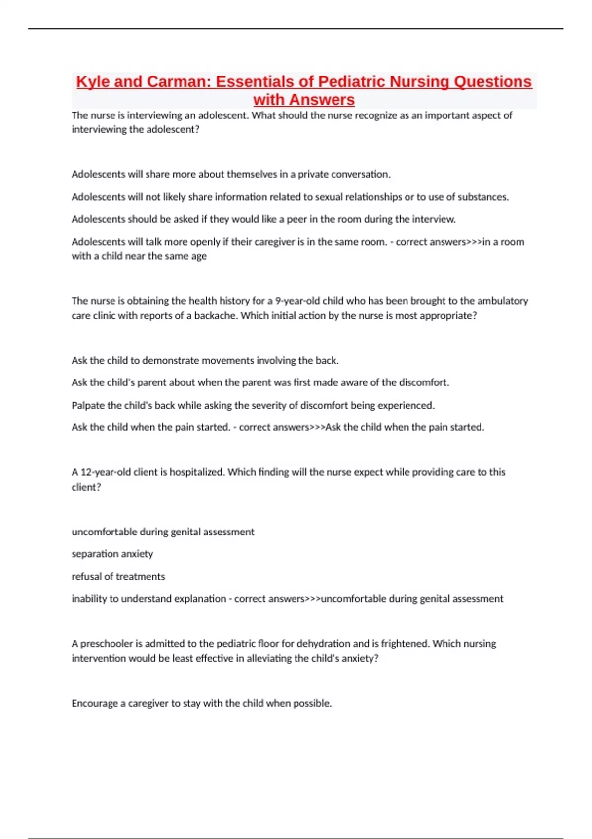 Ask the child when the pain started. - correct answers>>>Ask the child when the pain started.