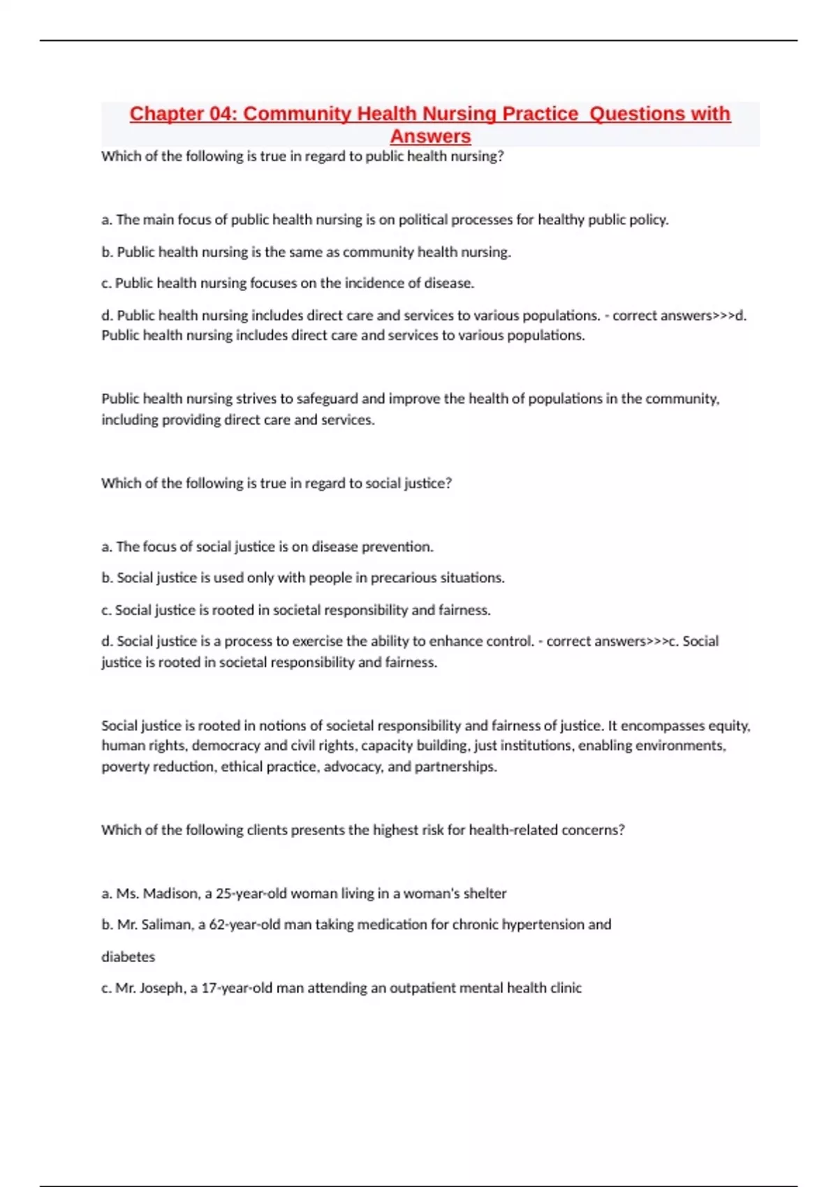 d. Social justice is a process to exercise the ability to enhance control. - correct answers>>>c. Social