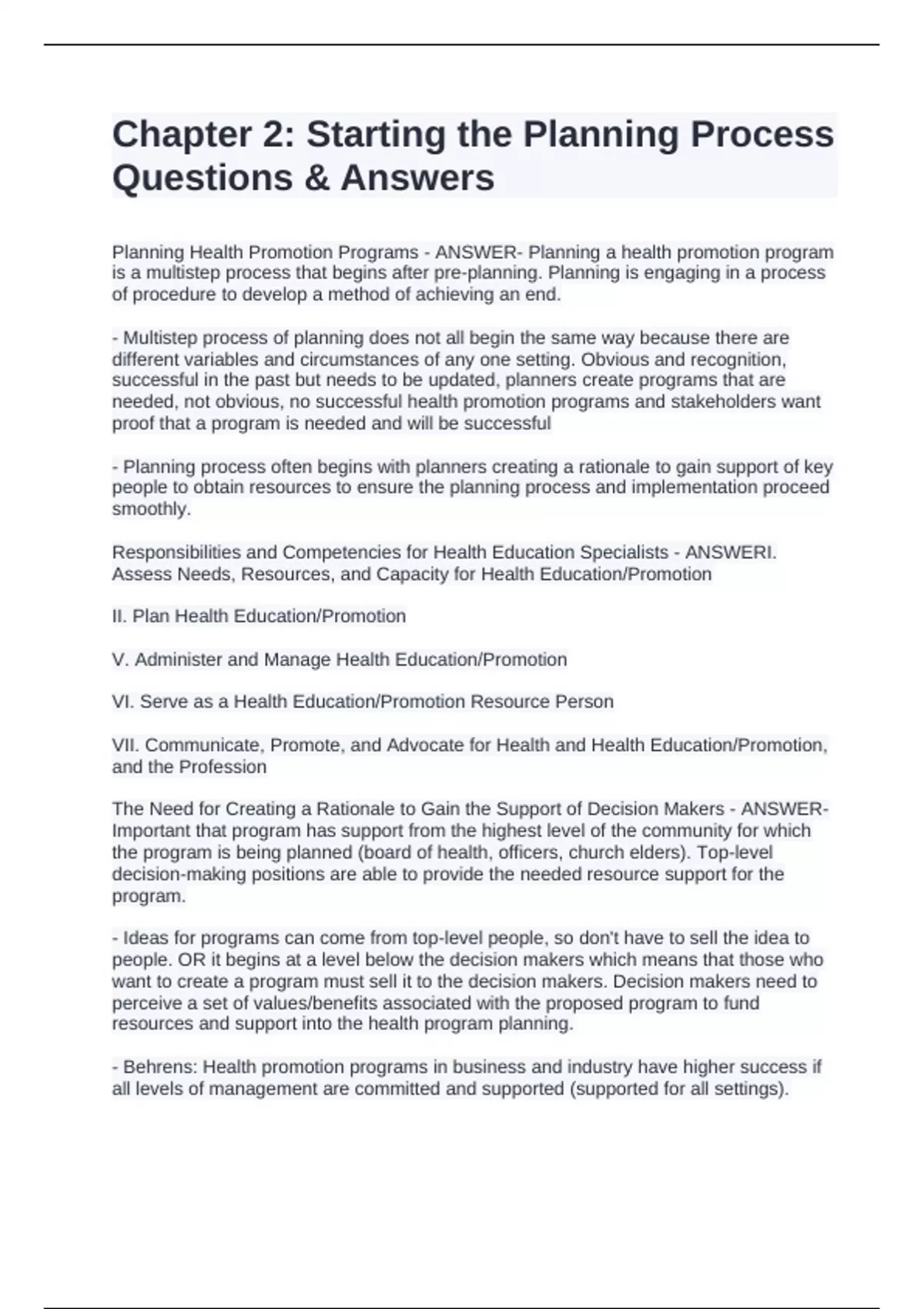 Planning Health Promotion Programs - ANSWER- Planning a health promotion program
