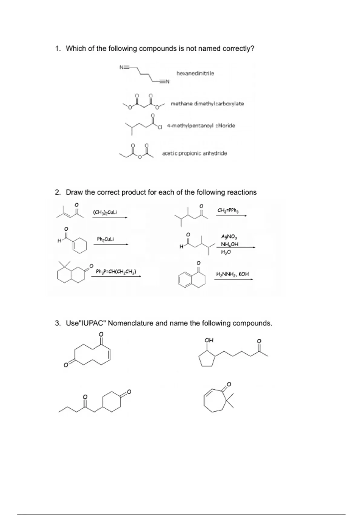 3. Use"IUPAC" Nomenclature and name the following compounds.