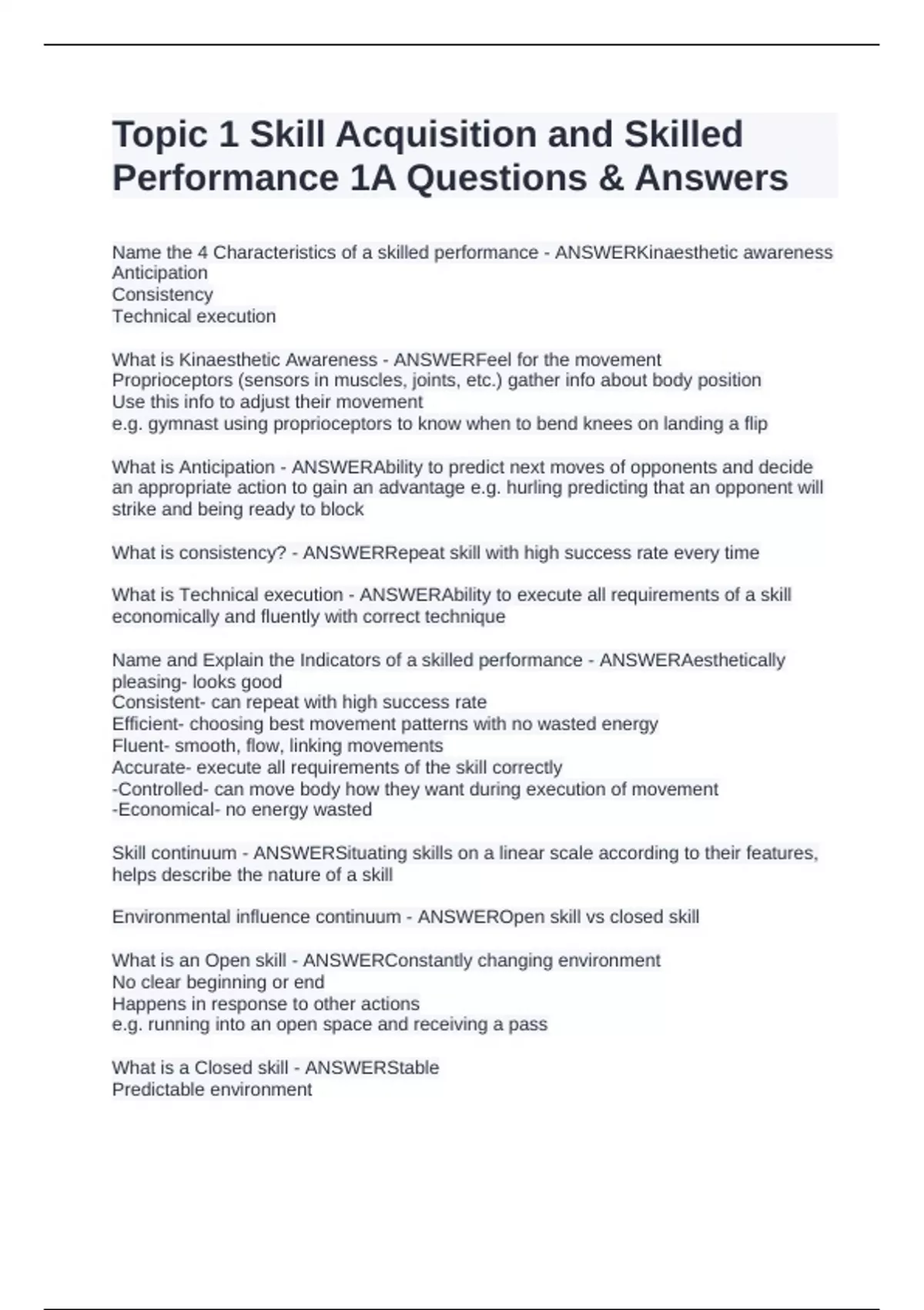Performance 1A Questions & Answers