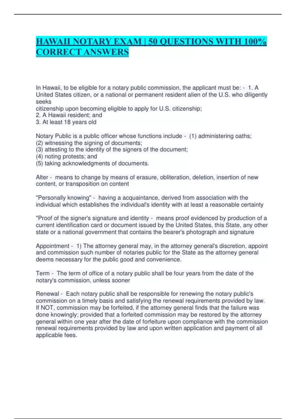 In Hawaii, to be eligible for a notary public commission, the applicant must be: - 1. A