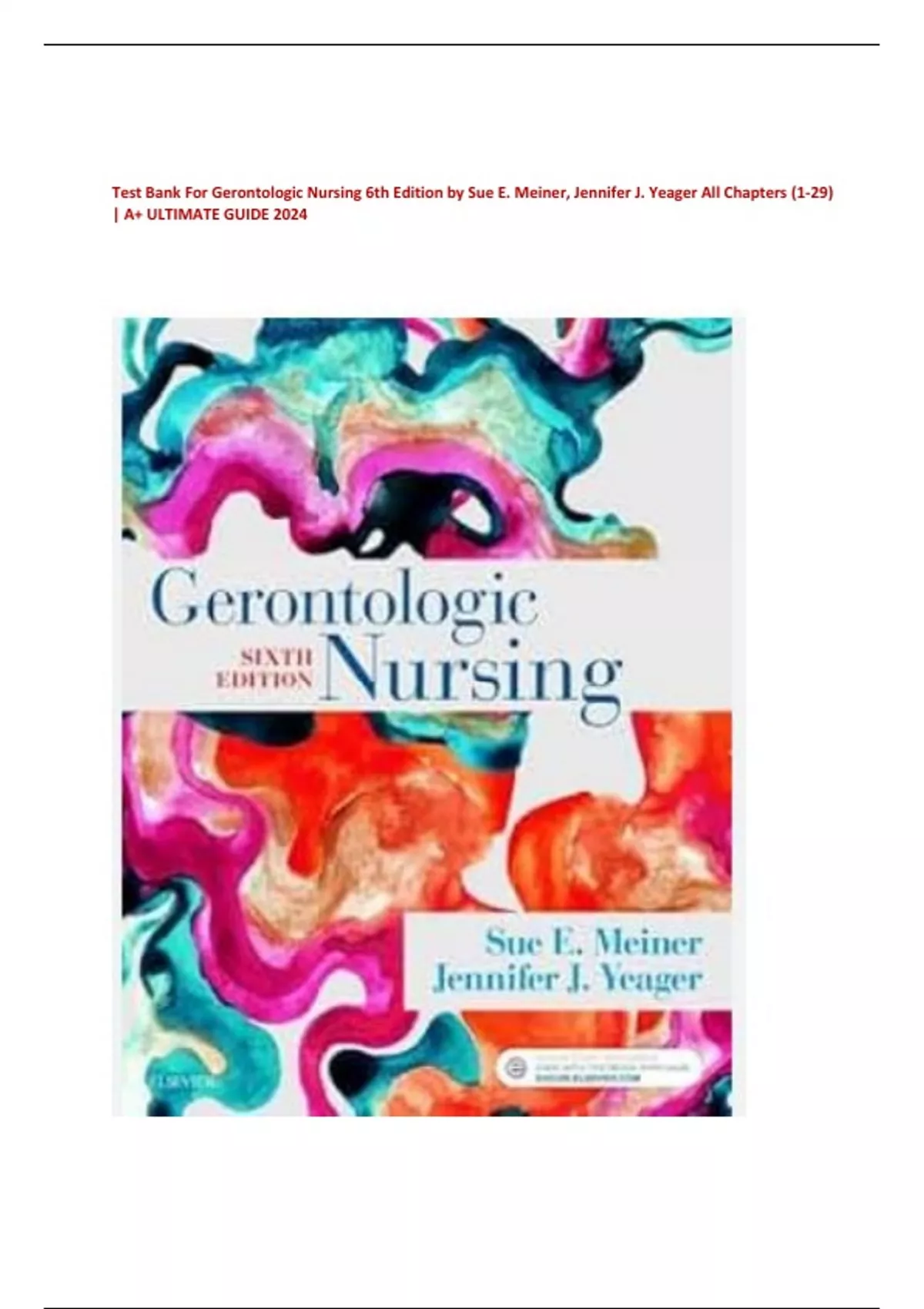 Test Bank For Gerontologic Nursing 6th Edition by Sue E. Meiner, Jennifer J. Yeager All Chapters (1-29)