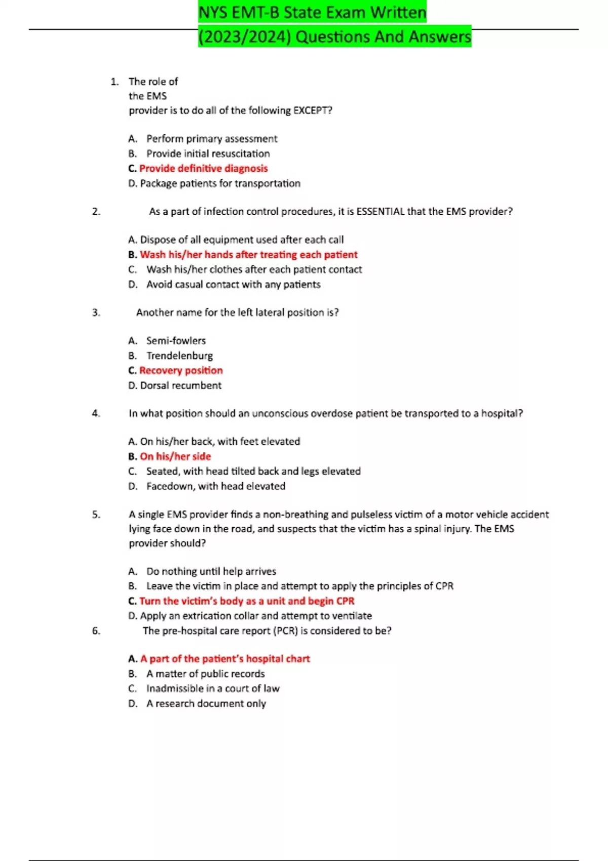 NYS EMT-B State Exam Written (2023 – 2024) Questions And Answers