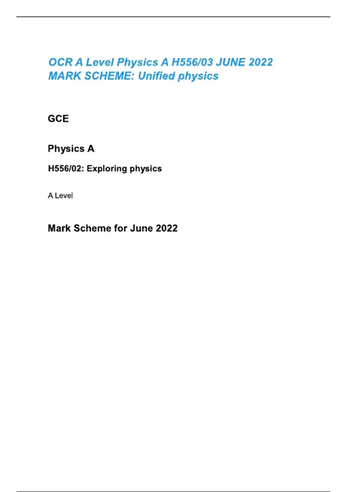 OCR A Level Physics A H556, 03 JUNE 2023 MARK SCHEME Unified physics