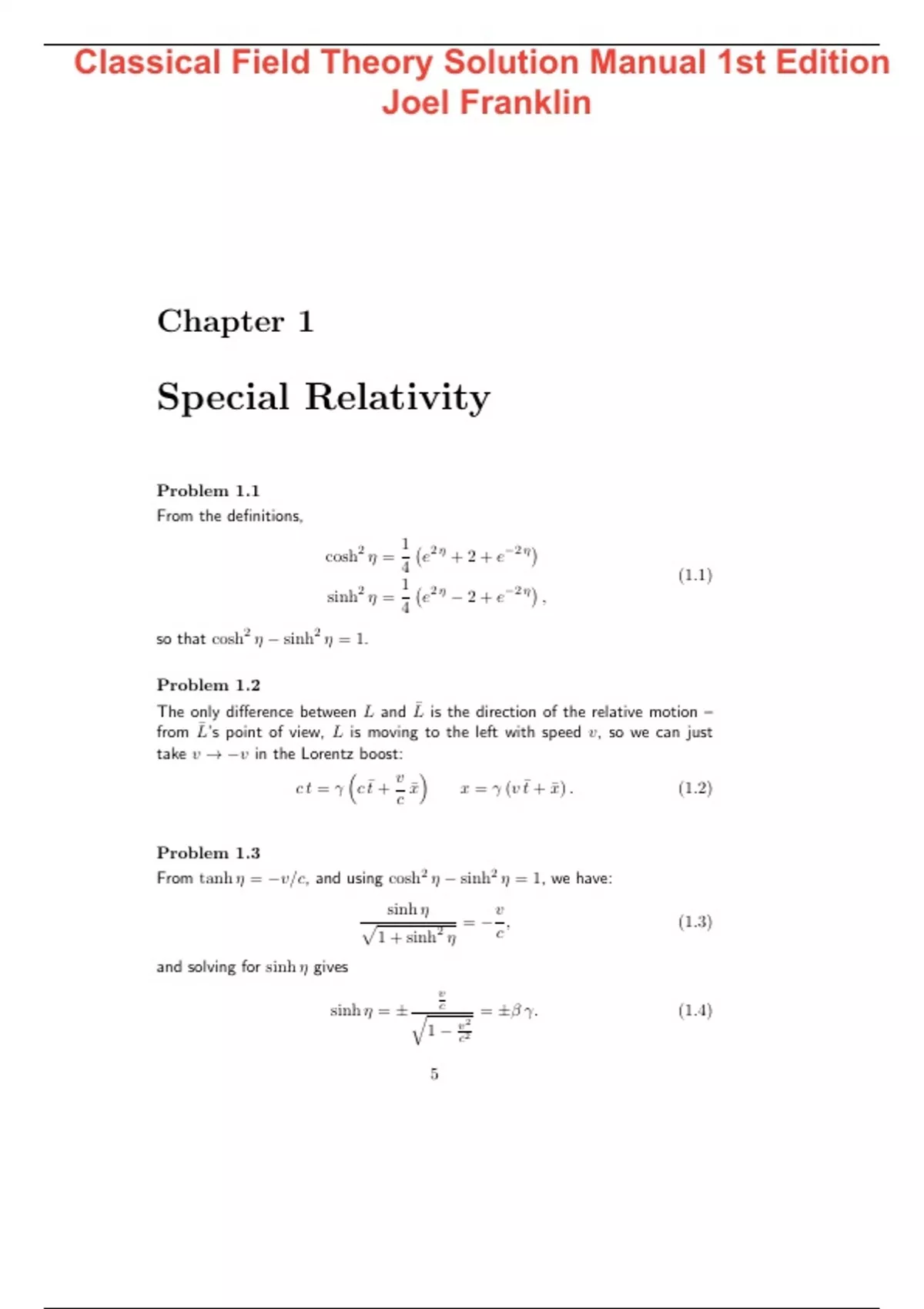 Classical Field Theory Solution Manual 1st Edition