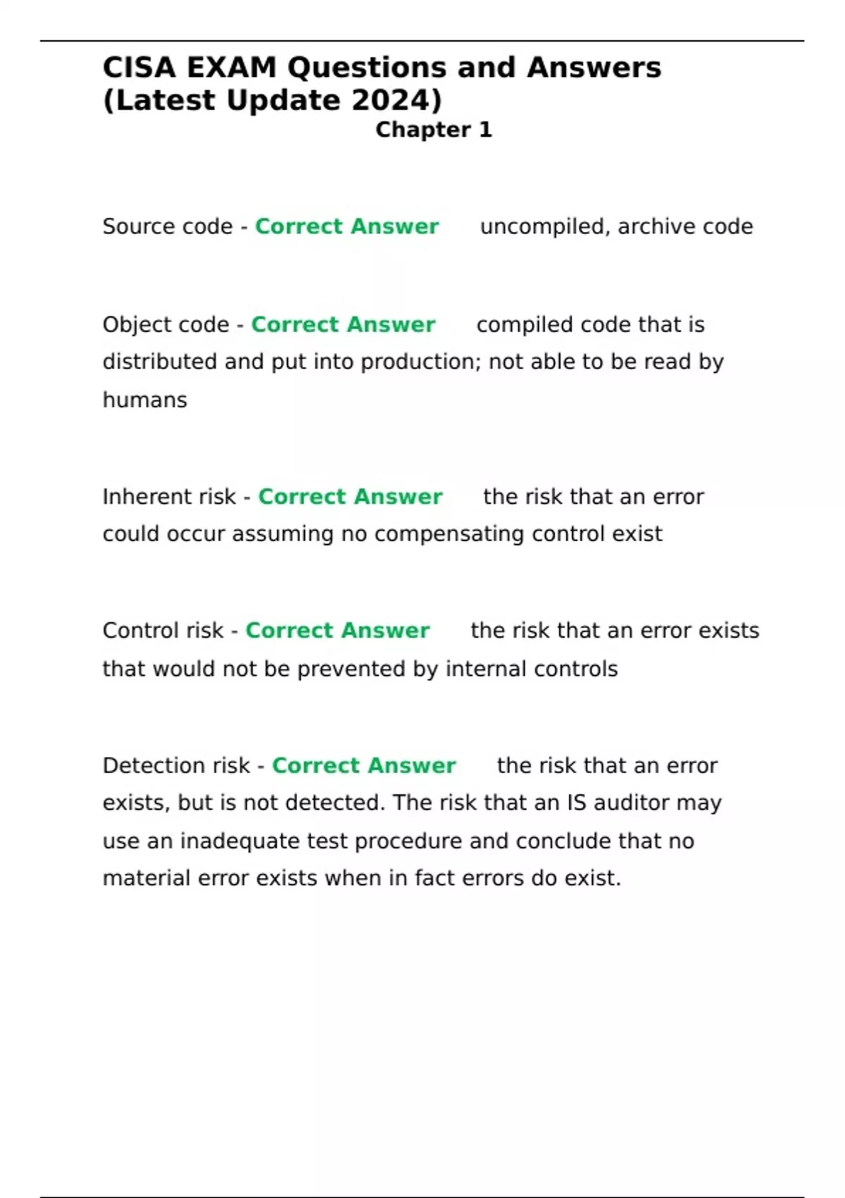 Inherent risk - Correct Answer ✅ the risk that an error