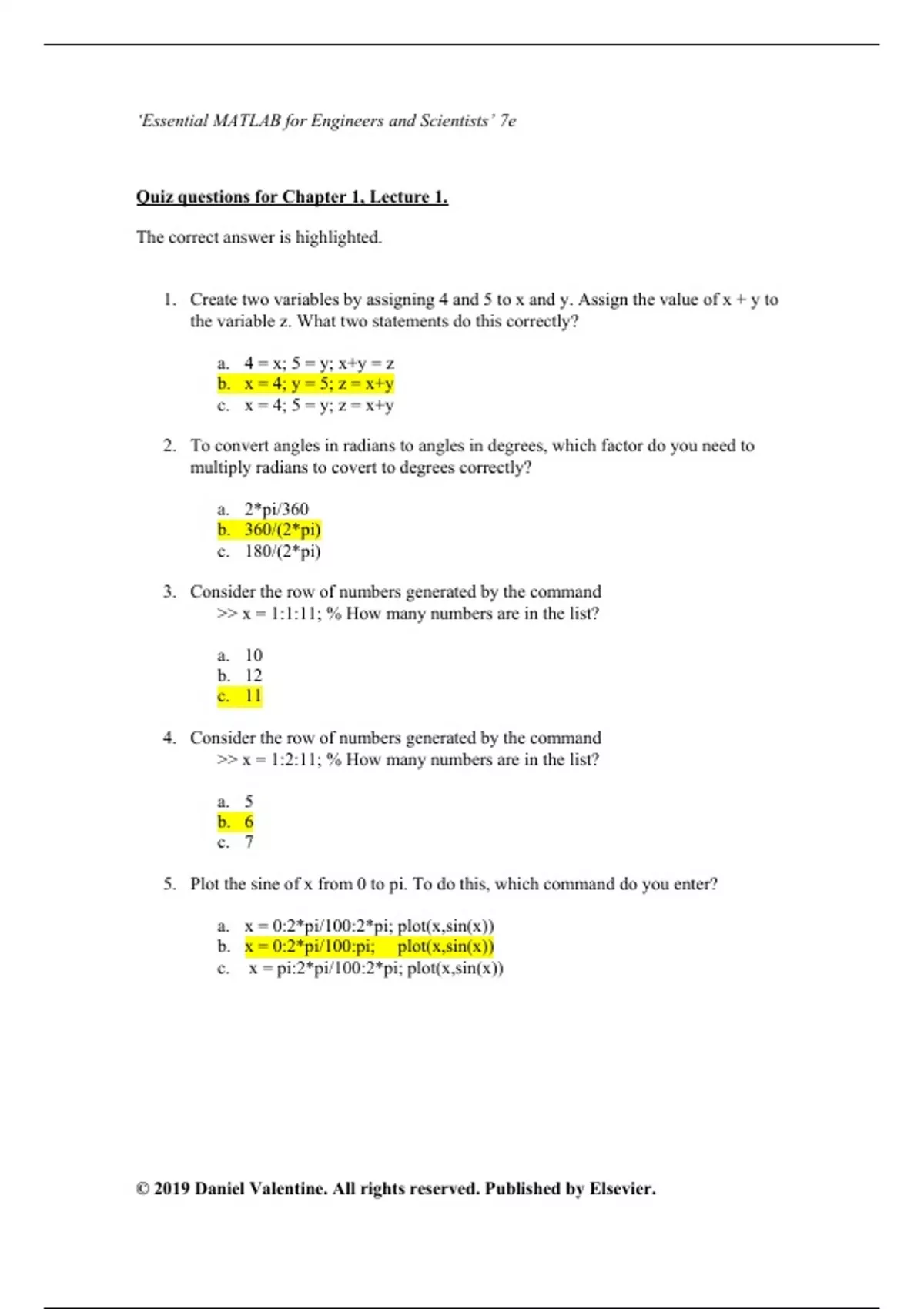 Essential MATLAB for Engineers and Scientists, Seventh Edition (Quizzes with Solutions, All Chapters)