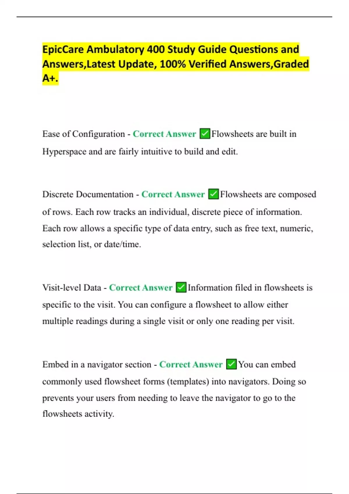 EpicCare Ambulatory 400 Study Guide Questions and