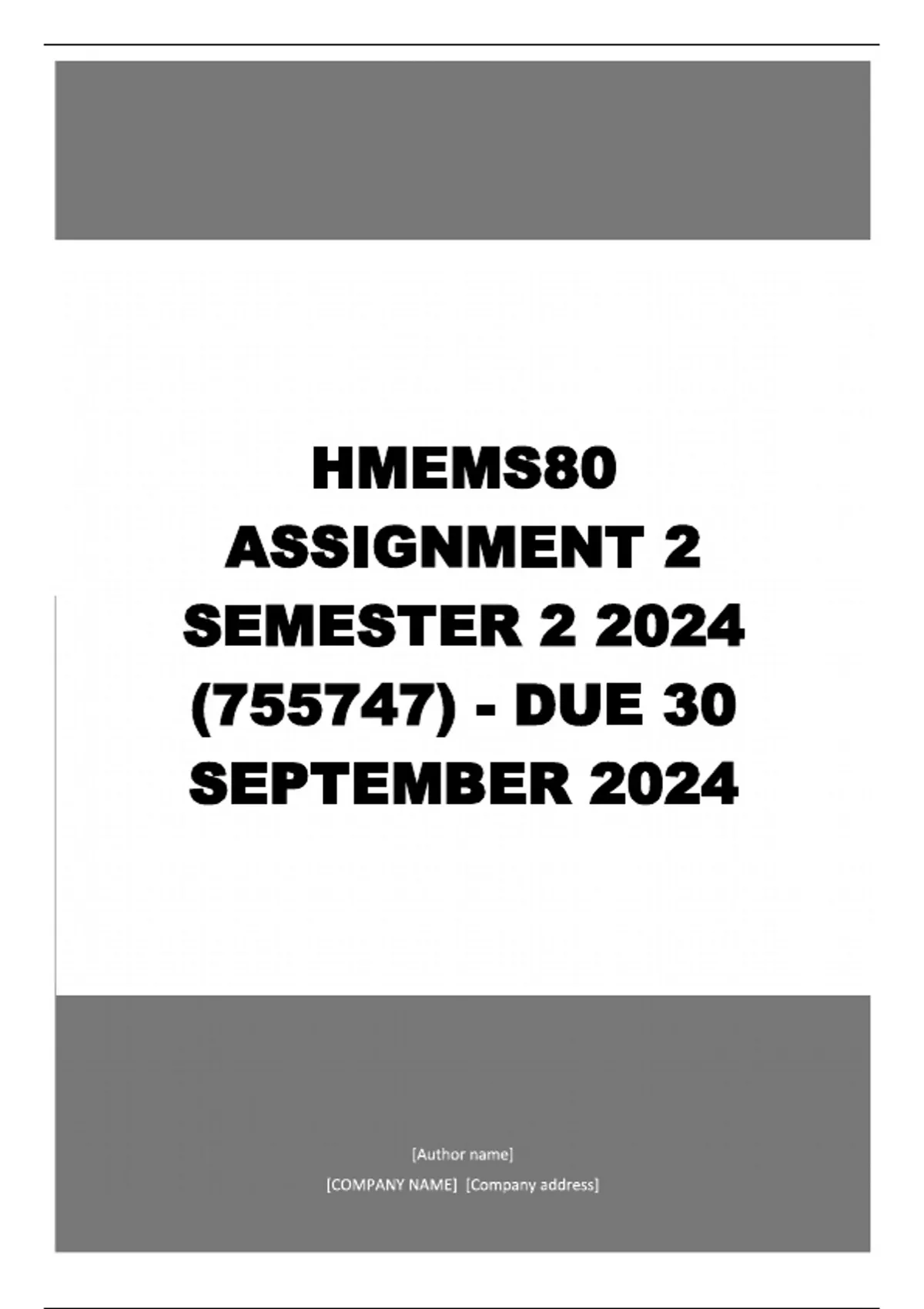 HMEMS80 Assignment 2 (COMPLETE ANSWERS) Semester 2 2024 (755747) - DUE 30 September 2024