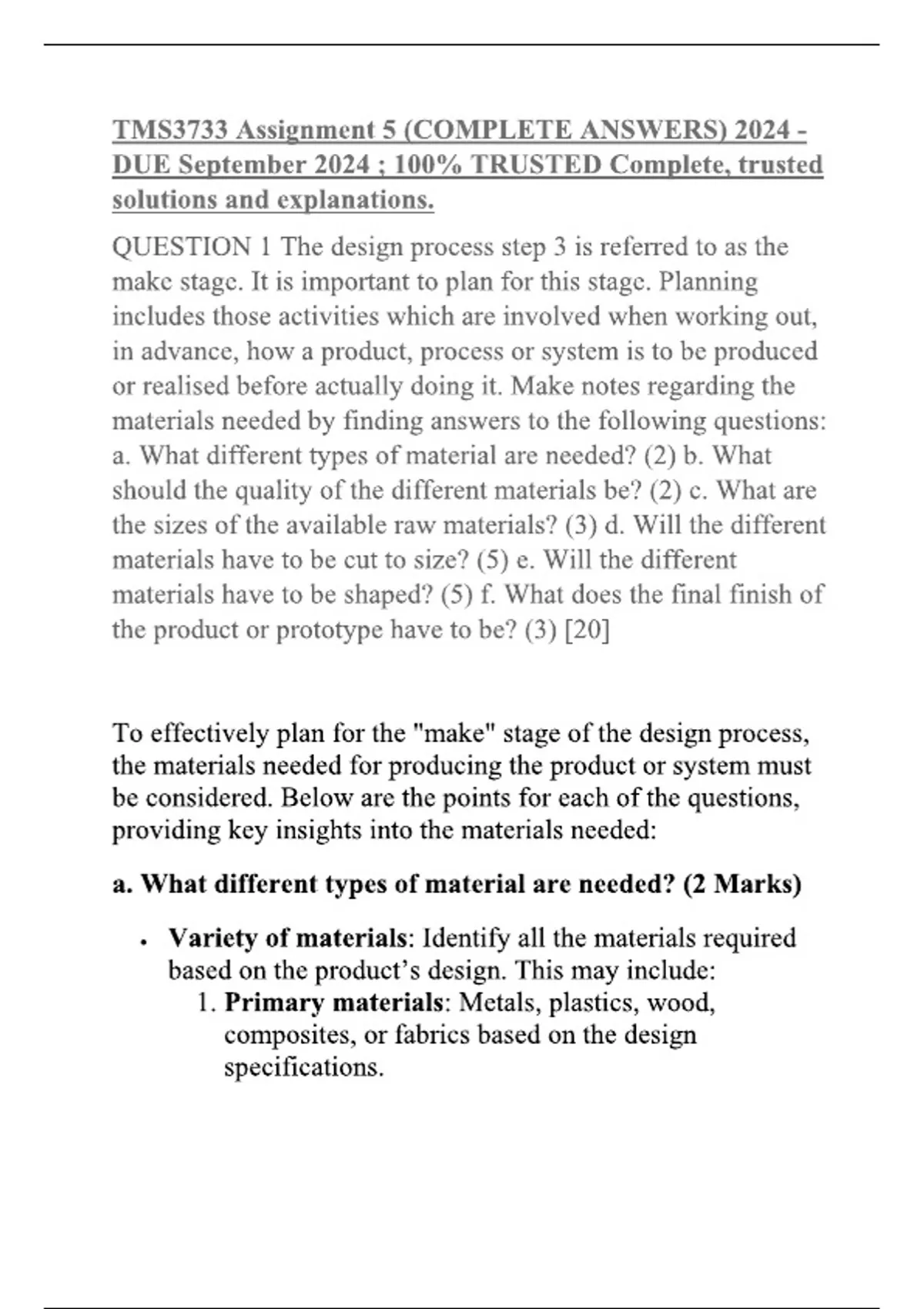 TMS3733 Assignment 5 (COMPLETE ANSWERS) 2024 - DUE September 2024 ALL CORRECTLY ANSWERED LATEST UPDATES | GRADED A+ (UNISA ASSIGNMENT| ASSESSMENT)