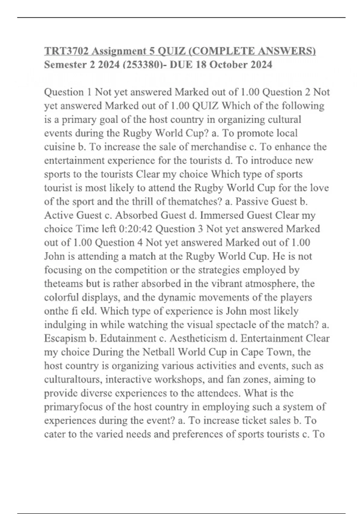 TRT3702 Assignment 5 QUIZ (COMPLETE ANSWERS) Semester 2 2024 (253380)- ALL CORRECTLY ANSWERED LATEST UPDATES | GRADED A+ (UNISA ASSIGNMENT| ASSESSMENT)