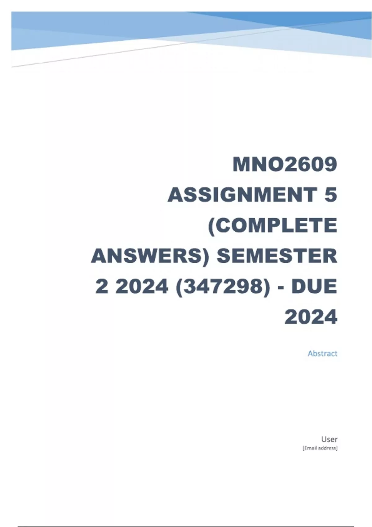 MNO2609 Assignment 5 (COMPLETE ANSWERS) Semester 2 2024 (347298) - DUE 2024 ALL CORRECTLY ANSWERED LATEST UPDATES | GRADED A+ (UNISA ASSIGNMENT| ASSESSMENT)