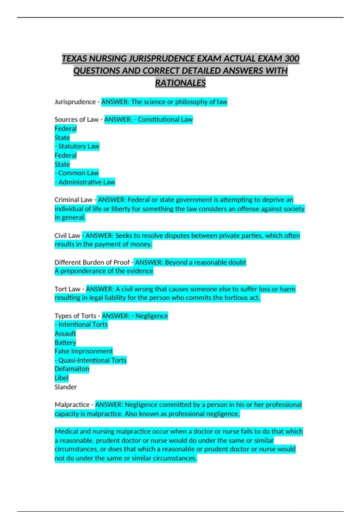 QUESTIONS AND CORRECT DETAILED ANSWERS WITH