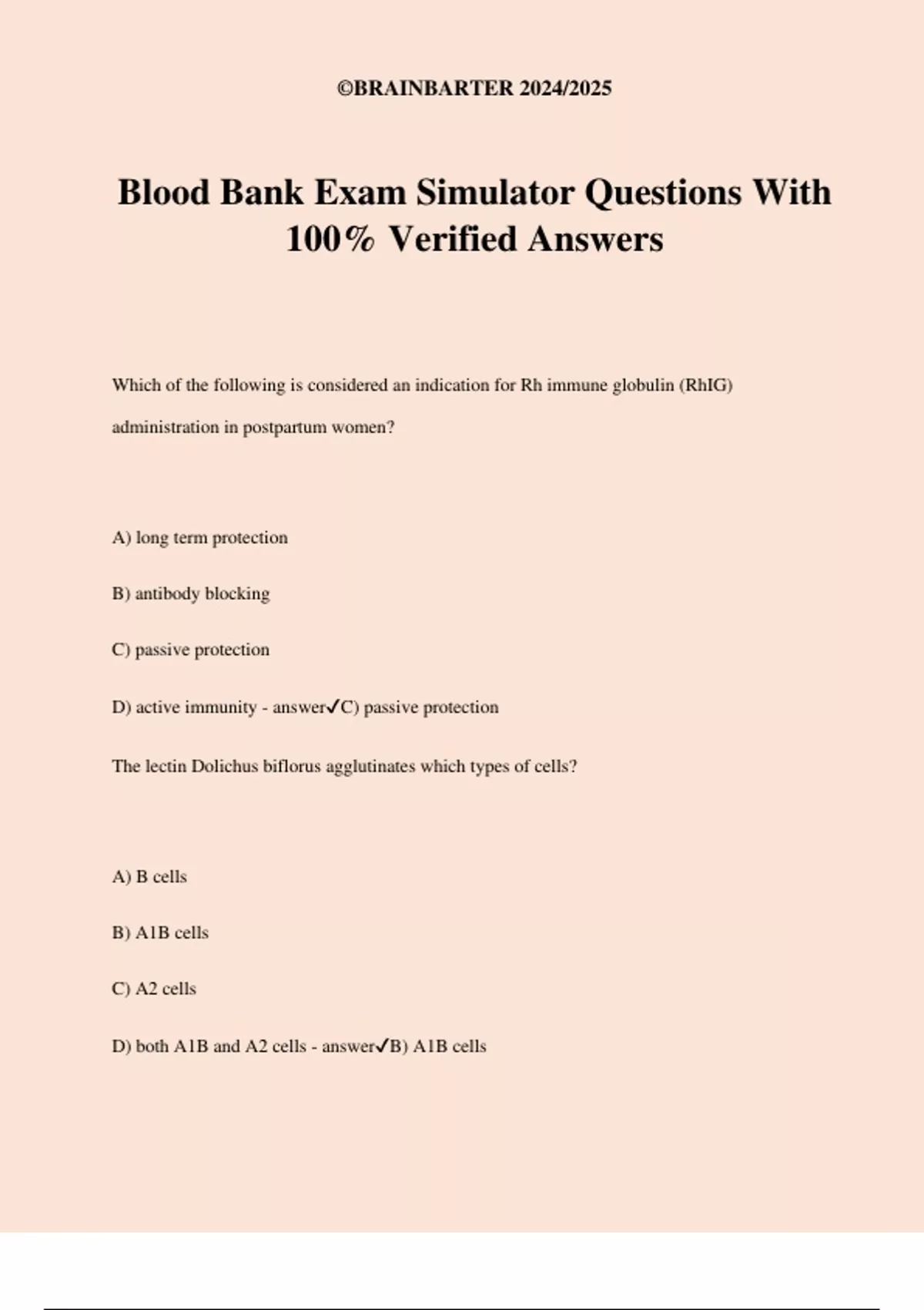Blood Bank Exam Simulator Questions With 100% Verified Answers