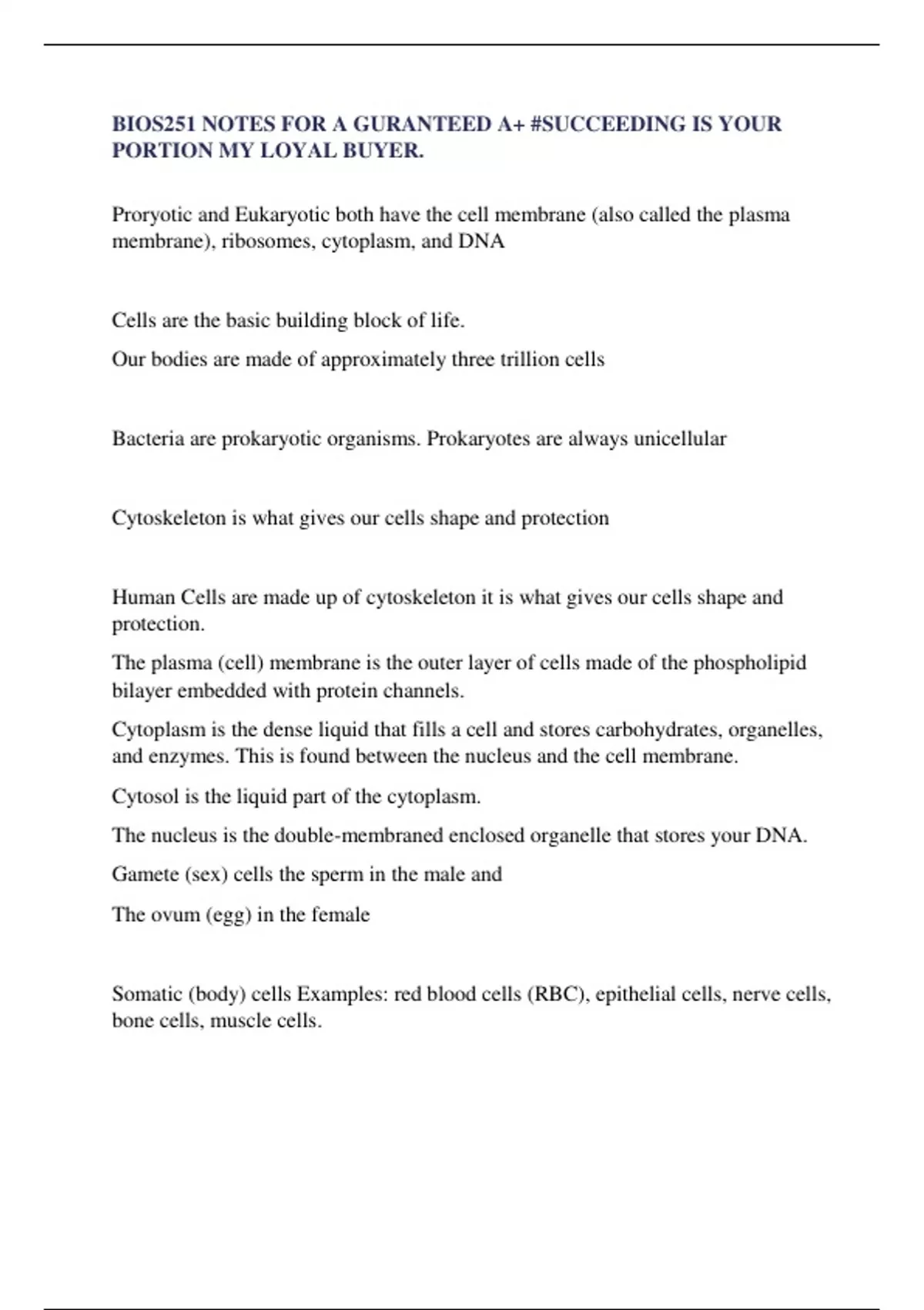 BIOS251 NOTES FOR A GURANTEED A+ #SUCCEEDING IS YOUR