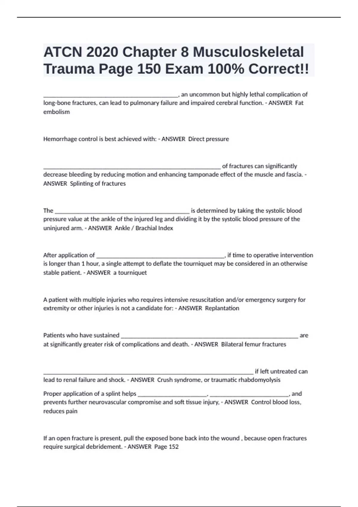 uninjured arm. - ANSWER Ankle / Brachial Index