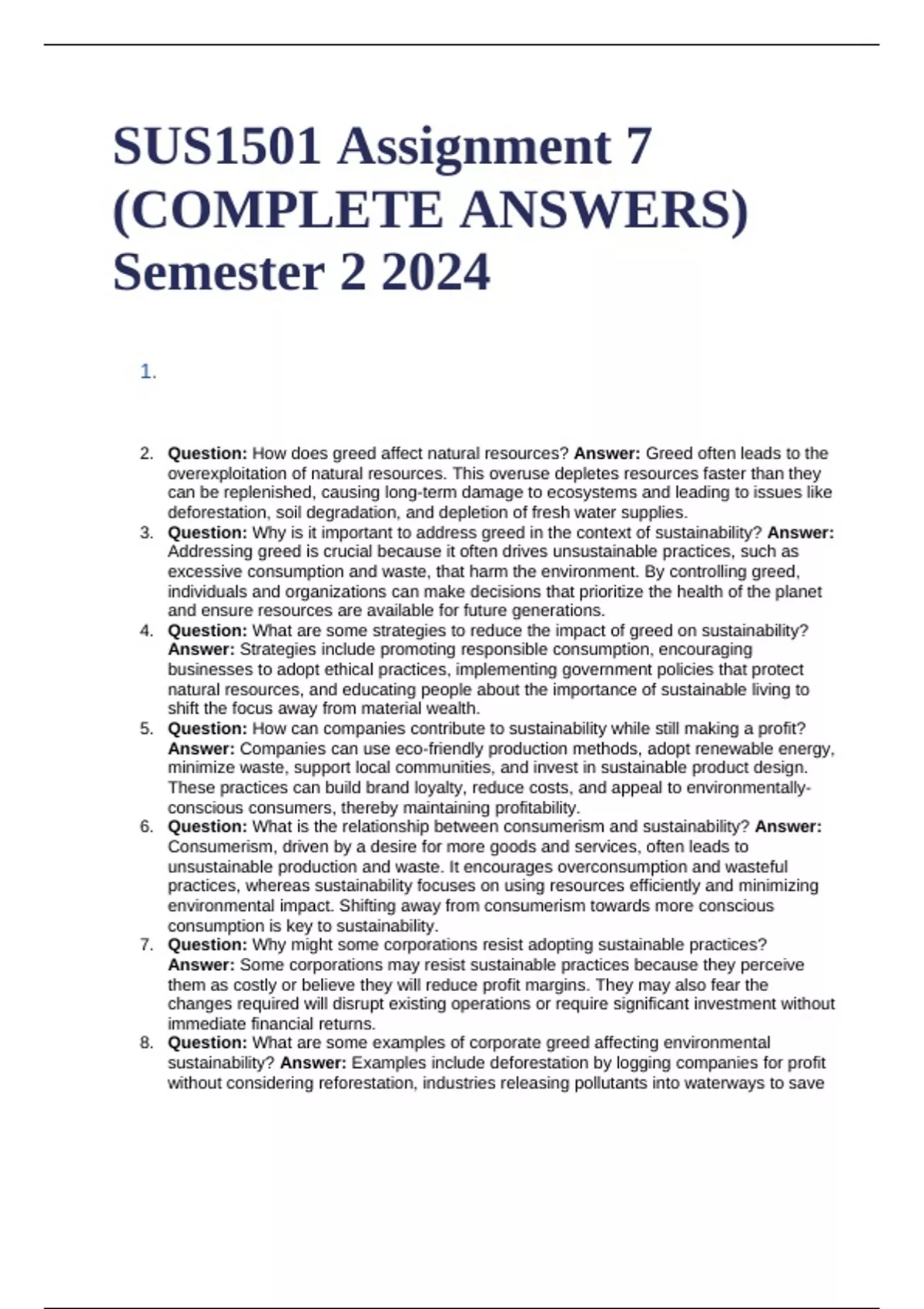 SUS1501 Assignment 7 (COMPLETE ANSWERS) Semester 2 2024