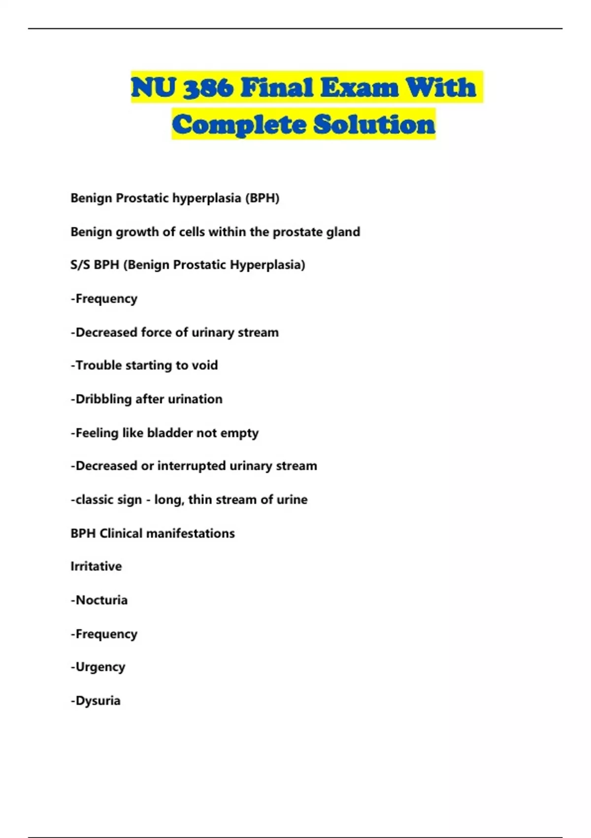 S/S BPH (Benign Prostatic Hyperplasia)