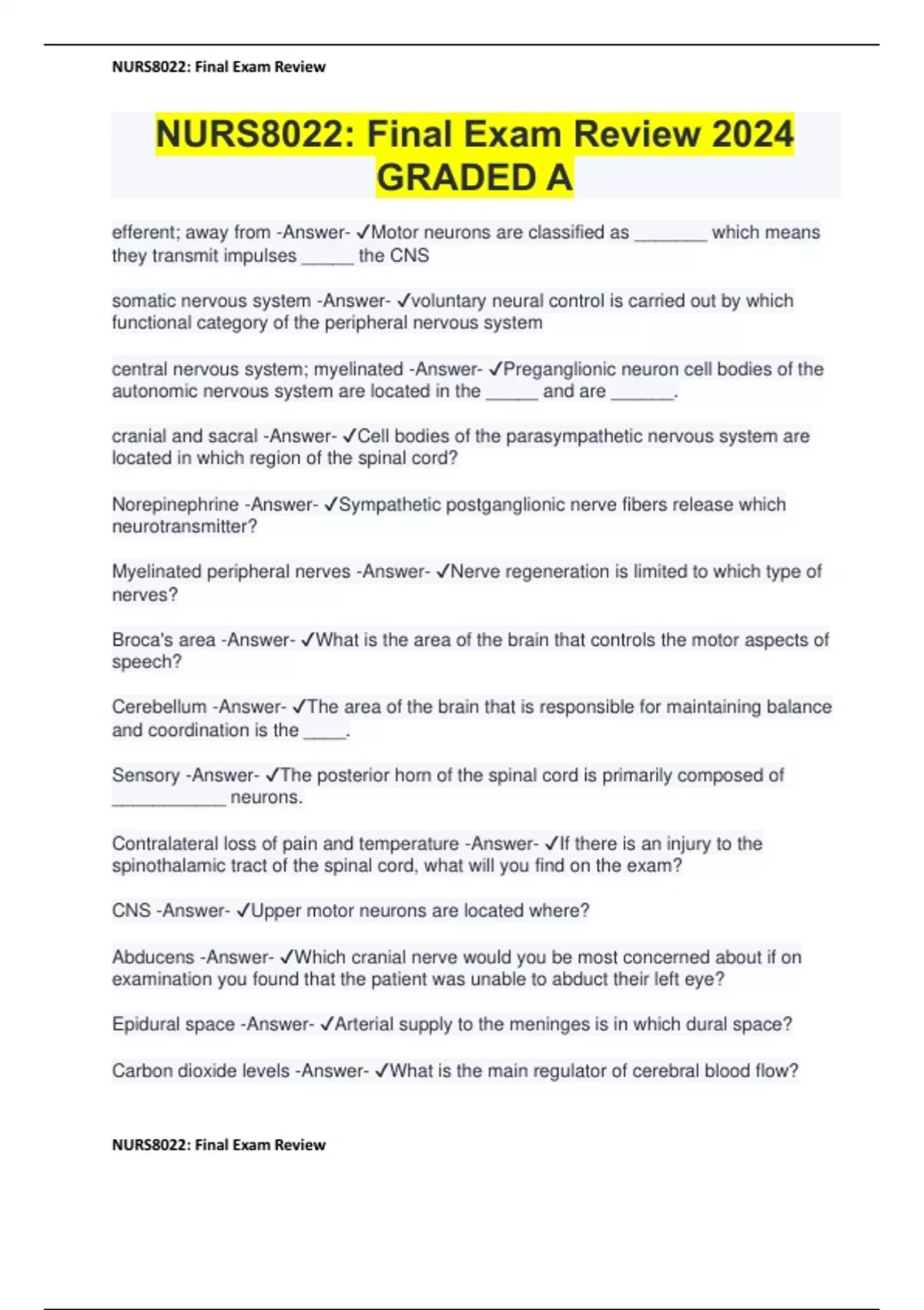 Cerebellum -Answer- ✔The area of the brain that is responsible for maintaining balance