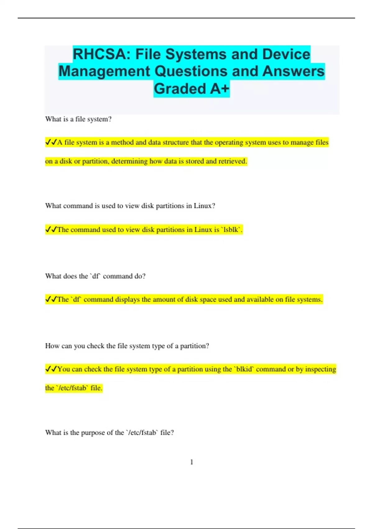 , ✔✔The `/etc/fstab` file is used to define how disk partitions, file systems, and other storage