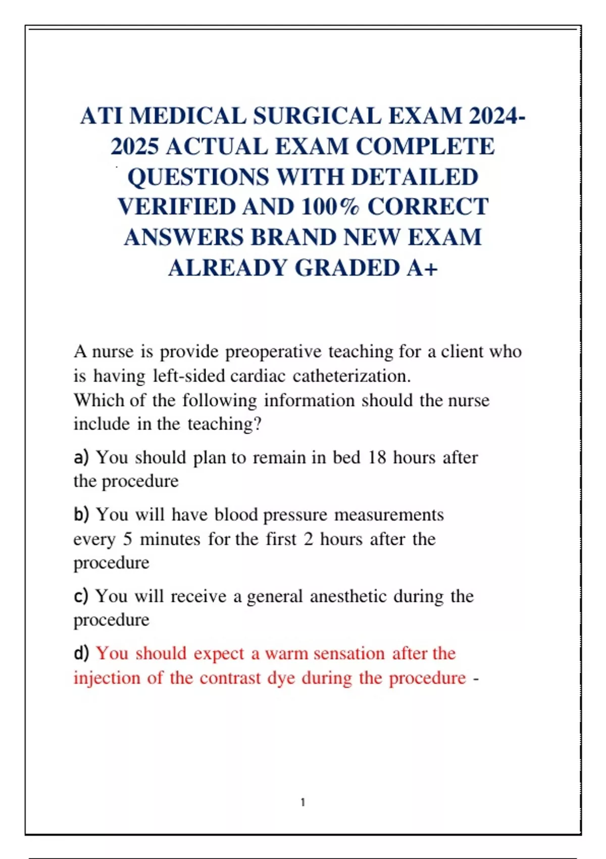 ATI MEDICAL SURGICAL EXAM 2024- 2025 ACTUAL EXAM COMPLETE QUESTIONS WITH DETAILED VERIFIED AND 100% CORRECT ANSWERS BRAND NEW EXAM ALREADY GRADED A+