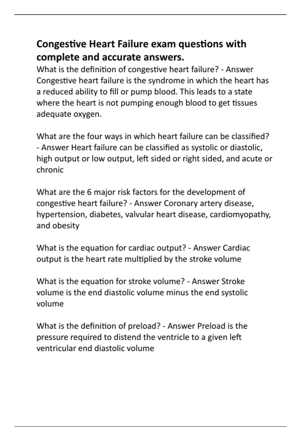 Congestive Heart Failure exam questions with