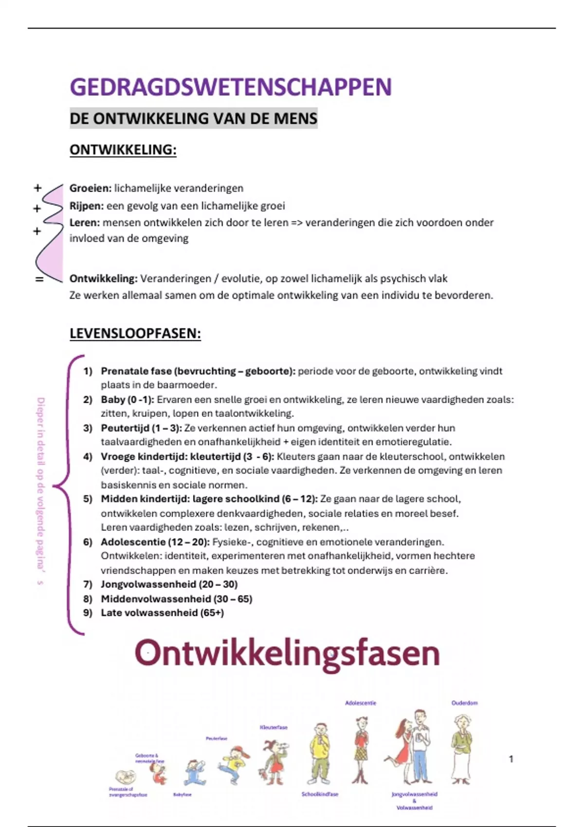 1) Prenatale fase (bevruchting – geboorte): periode voor de geboorte, ontwikkeling vindt