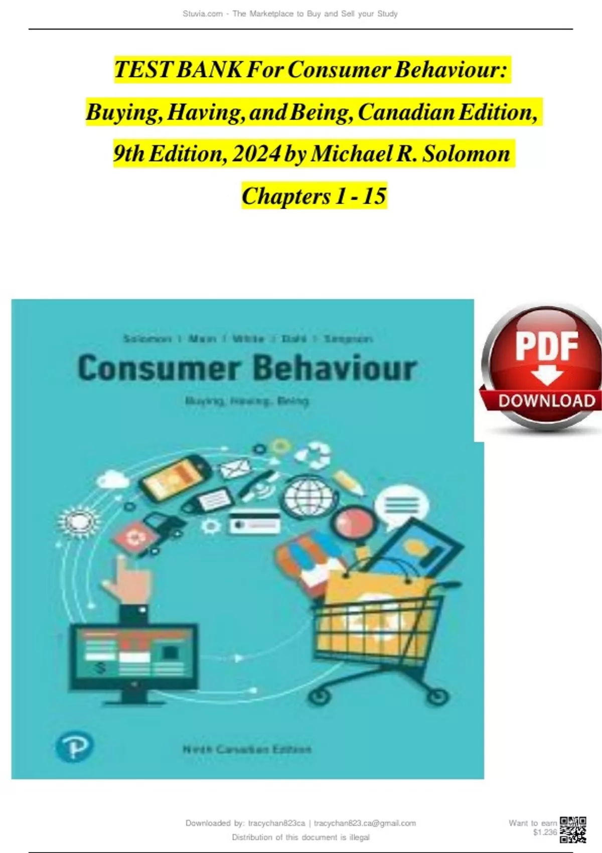 TEST BANK For Consumer Behaviour: Buying, Having, and Being, Canadian Edition, 9th Edition, 2024|25 by Michael R. Solomon, Verified Chapters 1 - 15, Complete Newest Version A+