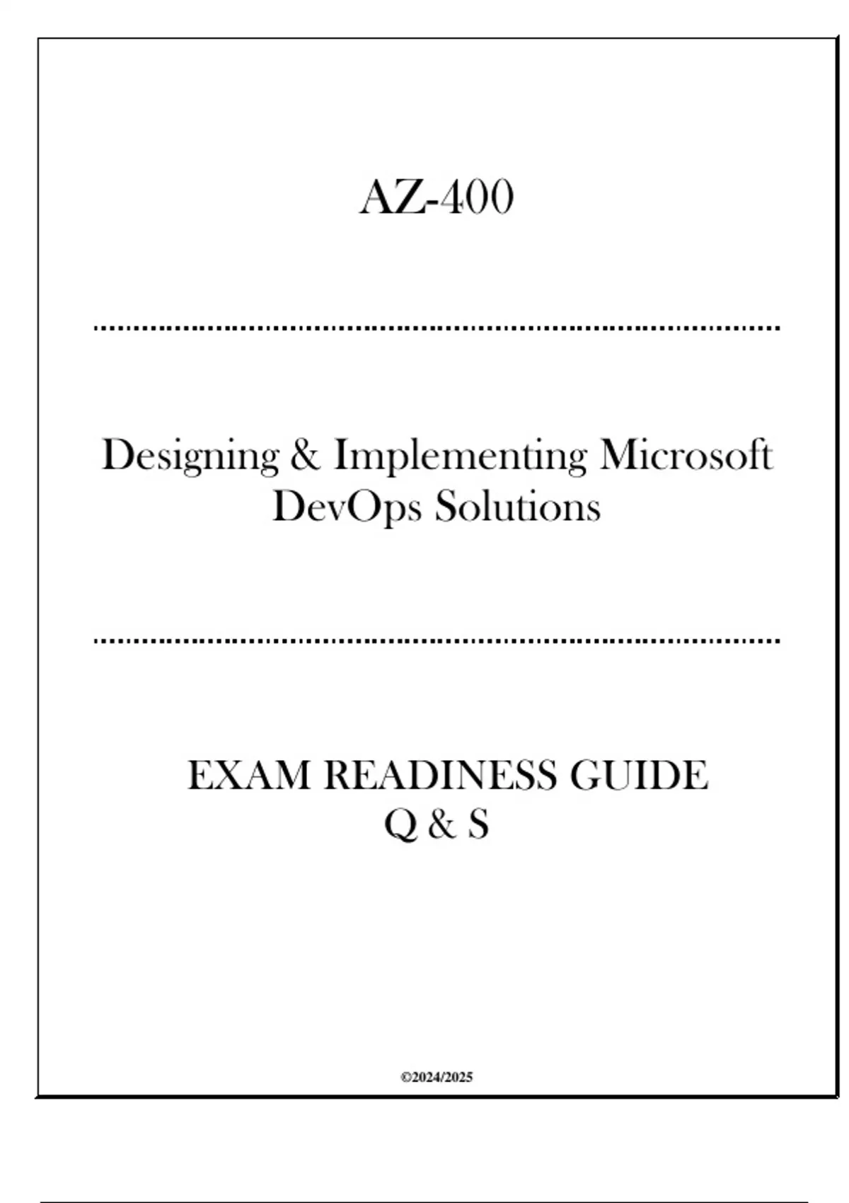 AZ-400 Designing & Implementing Microsoft DevOps Solutions - Updated Exam Readiness Guide 2024AZ-400 Designing & Implementing Microsoft DevOps Solutions - Updated Exam Readiness Guide 2024AZ-400 Designing & Implementing Microsoft DevOps Solutions - Updated Exam Readiness Guide 2024