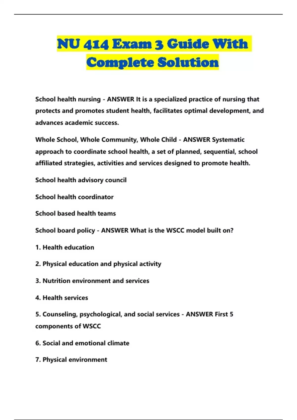 School board policy - ANSWER What is the WSCC model built on?