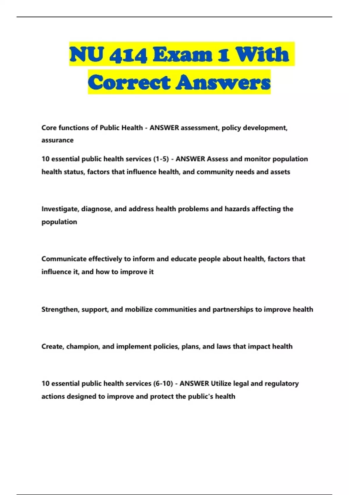 10 essential public health services (1-5) - ANSWER Assess and monitor population